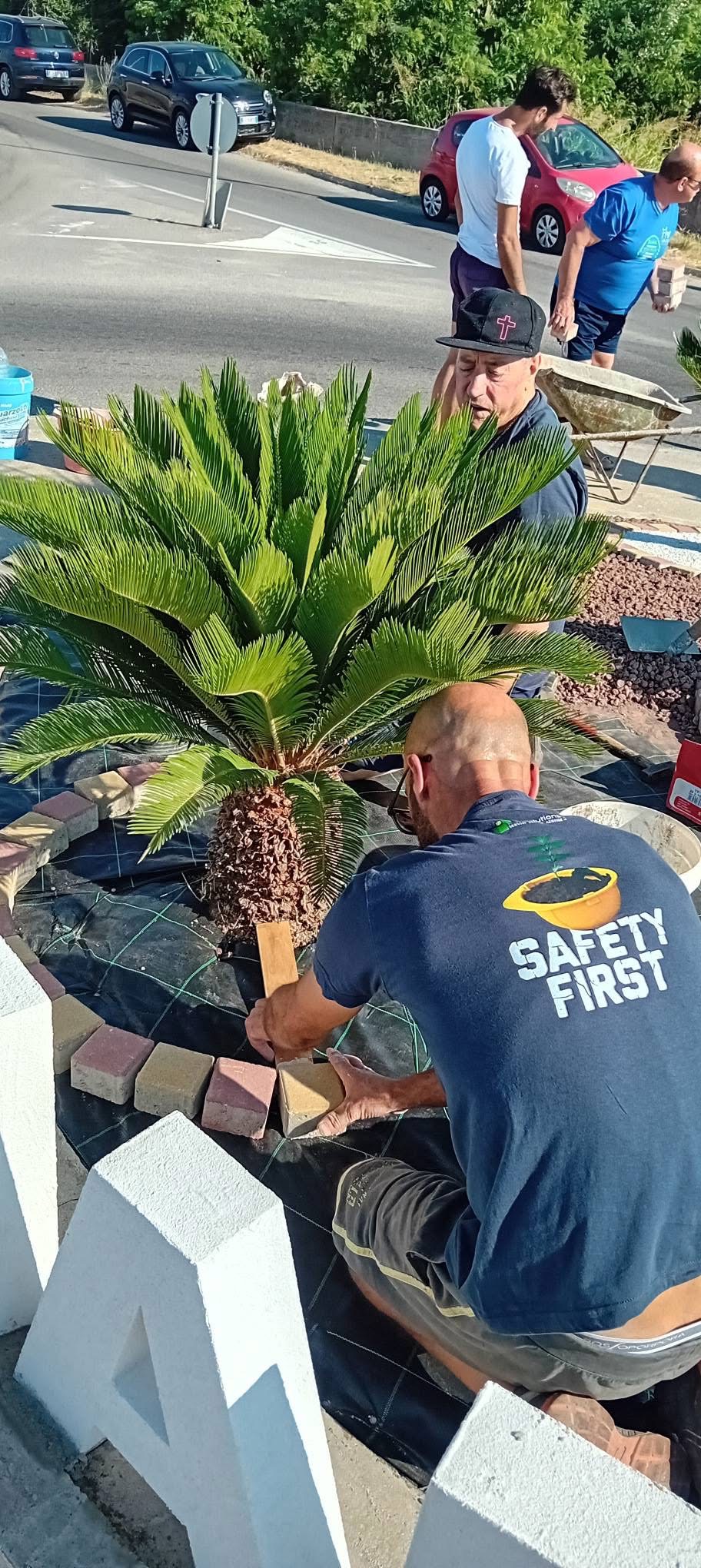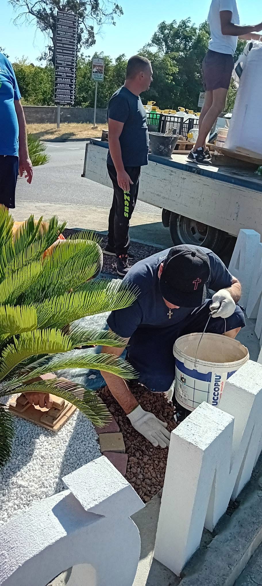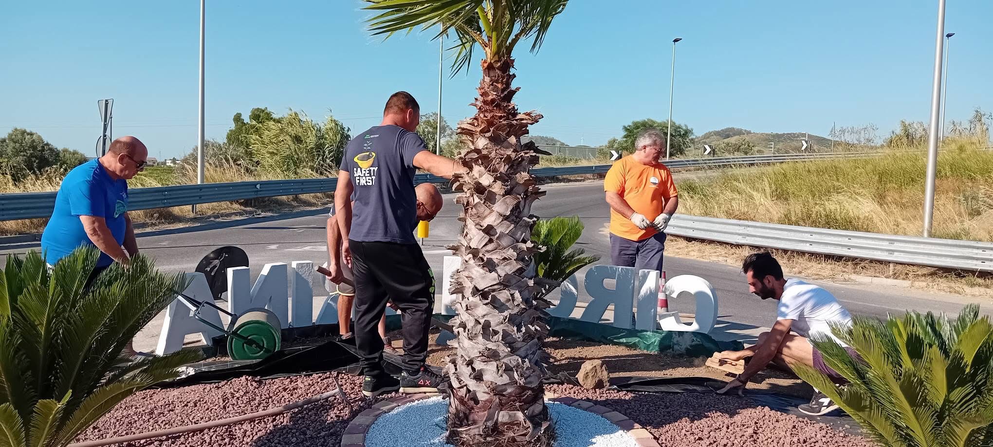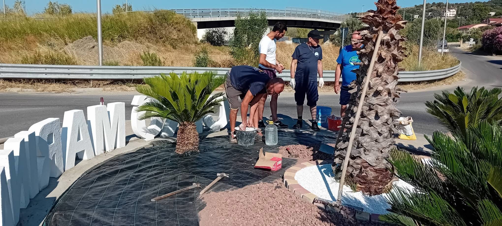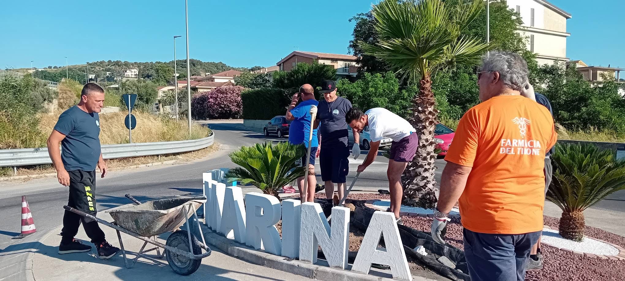 Il progetto è stato reso possibile grazie alla collaborazione con il Comune di Cirò Marina, che ha fornito i materiali fondamentali per la sistemazione estetica dell’aiuola, tra cui argille, lapilli e betonelle. Fondamentale anche il contributo del 5×1000, che ha permesso all’associazione di acquistare il telo antiradice, i chiodi, il cemento e la grande scritta bianca “CIRÒ MARINA” che ora campeggia al centro della rotonda, incorniciata dal verde delle palme e delle cycas.