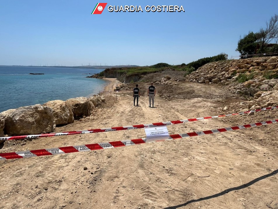In particolare i lavori accertati dai militari, sono consistiti in movimentazione del terreno, riprofilatura e rimodellamento del versante e della scarpata oltre al posizionamento di numerosi massi in pietra arenaria e realizzazione di una strada sterrata di accesso al mare.