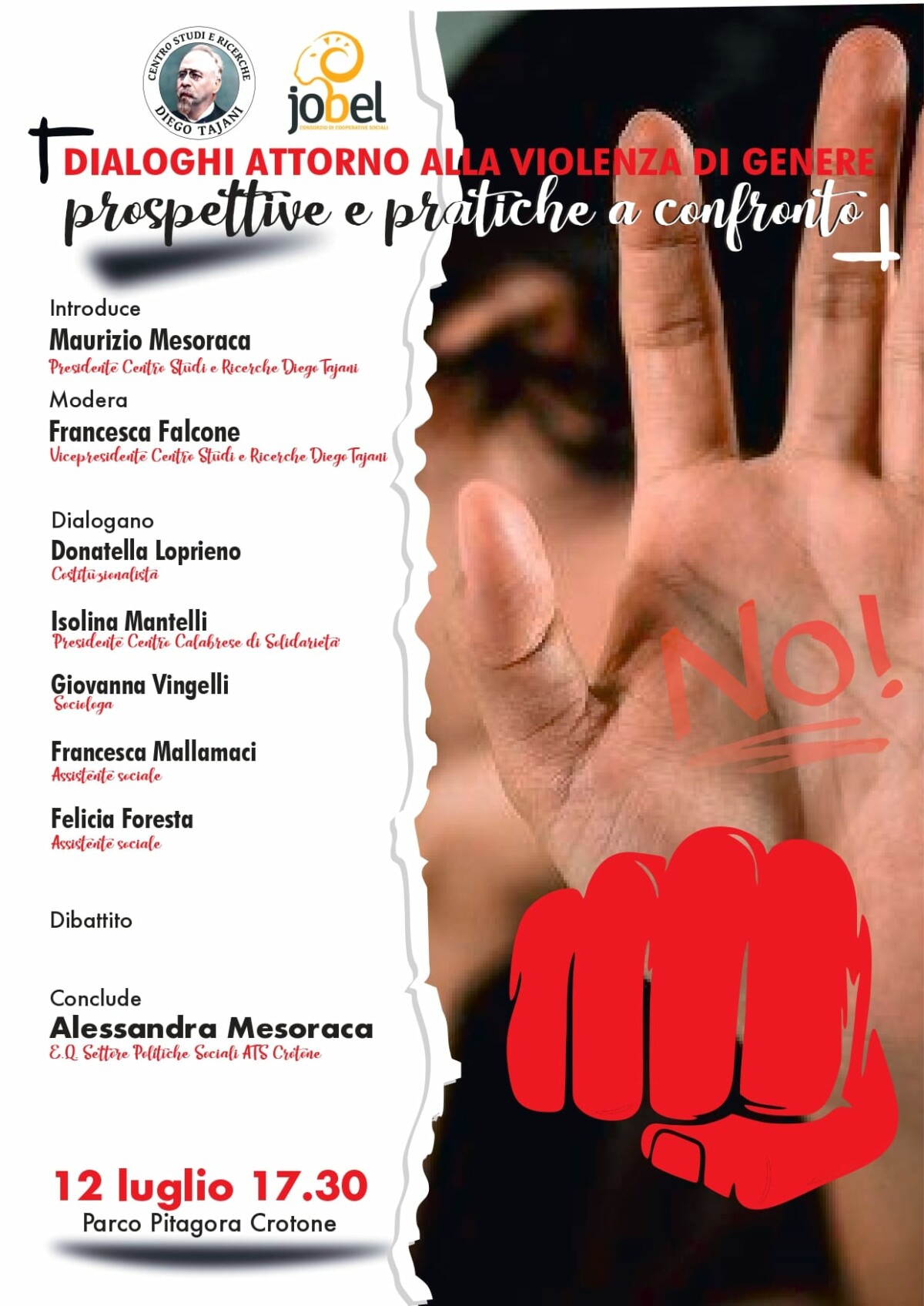 CROTONE – Si terrà il prossimo 12 luglio, alle ore 17.30, presso Parco Pitagora, un convegno sul tema “Dialoghi attorno alla violenza di genere. Prospettive e pratiche a confronto” organizzato dal Centro studi e ricerche Diego Tajani e dal Consorzio Jobel. In un momento storico in cui la violenza di genere continua a manifestarsi in forme sempre più complesse e pervasive, nasce l’esigenza di fermarsi, riflettere e co-costruire nuovi spazi di confronto tra chi opera quotidianamente e chi studia questo tema da prospettive diverse.