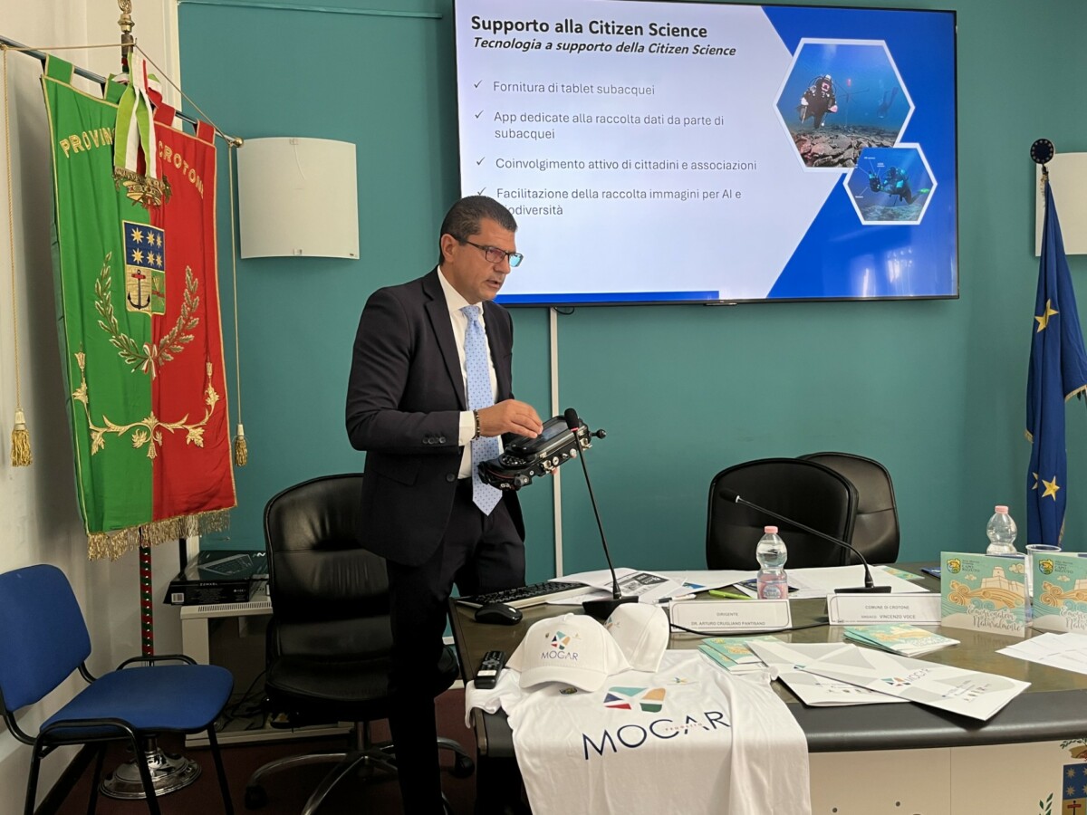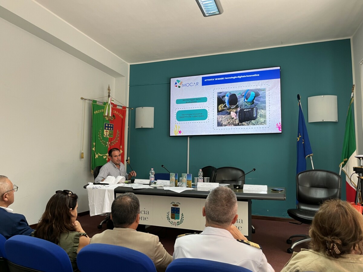 La Provincia di Crotone – in qualità di ente gestore dell’Area Marina Protetta Capo Rizzuto – ha presentato e avviato l’importante progetto MOCAR – Monitoraggio e Caratterizzazione della biodiversità dell’AMP Capo Rizzuto attraverso tecnologie digitali innovative. L’incontro si è tenuto, la mattina del 14 luglio, presso la sala ‘Paolo Borsellino’ dell’Ente, alla presenza del Presidente della Provincia Sergio Ferrari, del Dirigente del Settore 5 ‘Area Marina Protetta’, Arturo Crugliano Pantisano, del ricercatore Andrea Saverino per 3D Research Srl, del biologo Andrea Mistretta, del Sindaco di Crotone Vincenzo Voce, della Sindaca di Isola di Capo Rizzuto, Maria Grazia Vittimberga e di Ivan Bari a rappresentare la Capitaneria di Porto di Crotone.