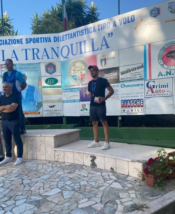 Continuano le vittorie del giovane Francesco Pio RENDA, in data 13 Luglio 2025 si e´ svolta la finale del Campionato Estivo Fitav di   2 e 3 categoria, Veterani e Master,  presso il TAV La Tranquilla di Limbadi (VV), Francesco a fine di un bellissimo campionato svoltosi su 4 tappe di 100 piattelli cad è riuscito a conquistare il 3 posto confrontantosi con atleti piu grande di lui e con maggiore esperienza.