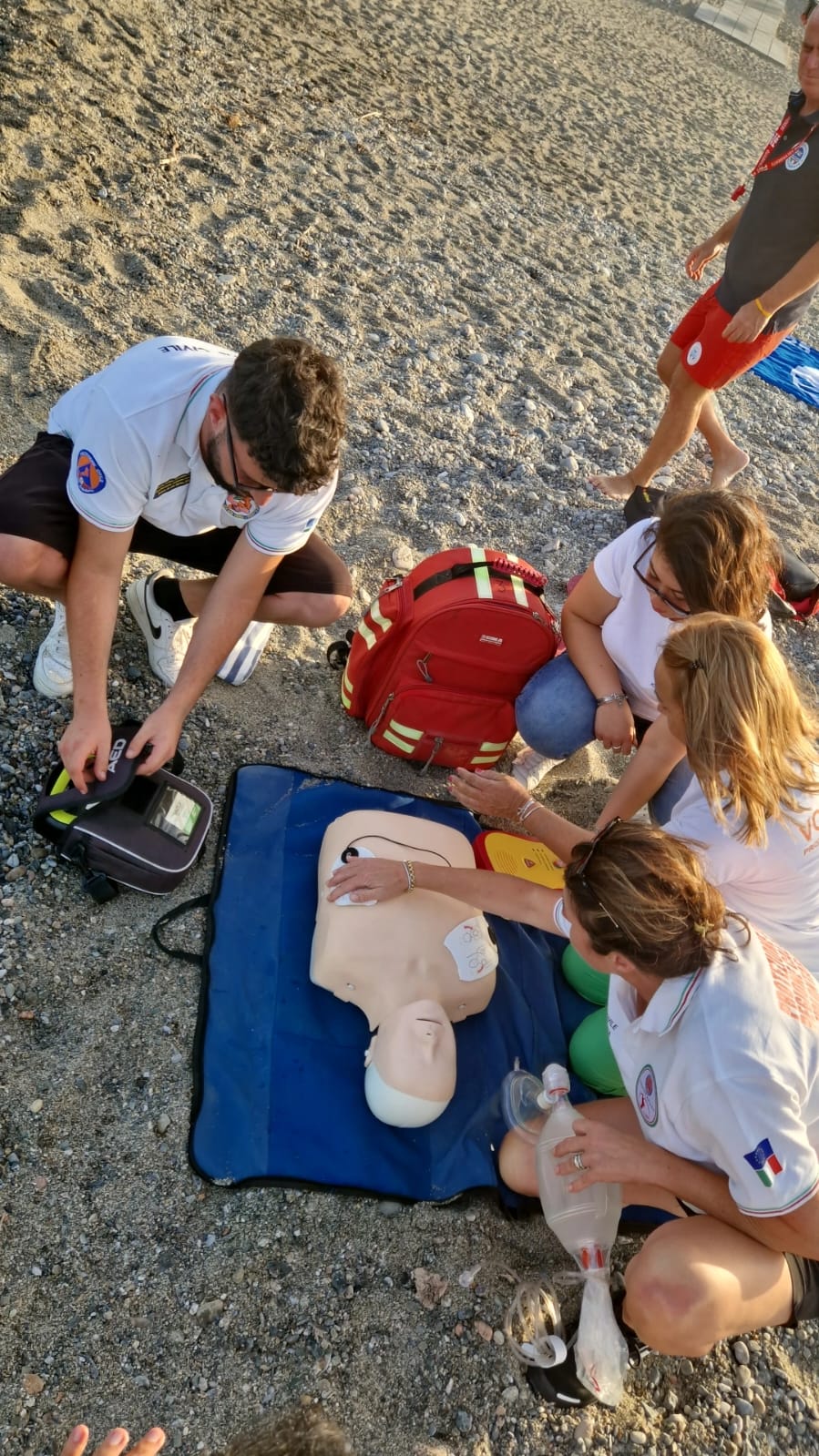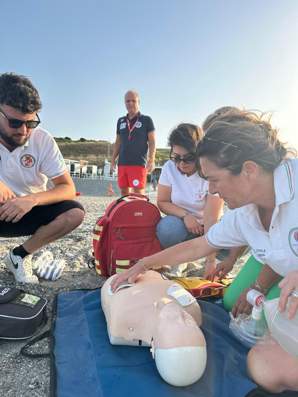 Durante l’esibizione, è stato simulato un intervento di salvataggio di un pericolante, portato in salvo con tecniche di soccorso, seguito da un’attività di rianimazione cardiopolmonare (RCP) con l’utilizzo del defibrillatore semiautomatico. La simulazione di primo soccorso è stata realizzata anche dall’associazione Jonio Sicuro guidata da Saverio Fiore che ha evidenziato le corrette manovre da eseguire in caso di arresto cardiaco e l’importanza della defibrillazione precoce.