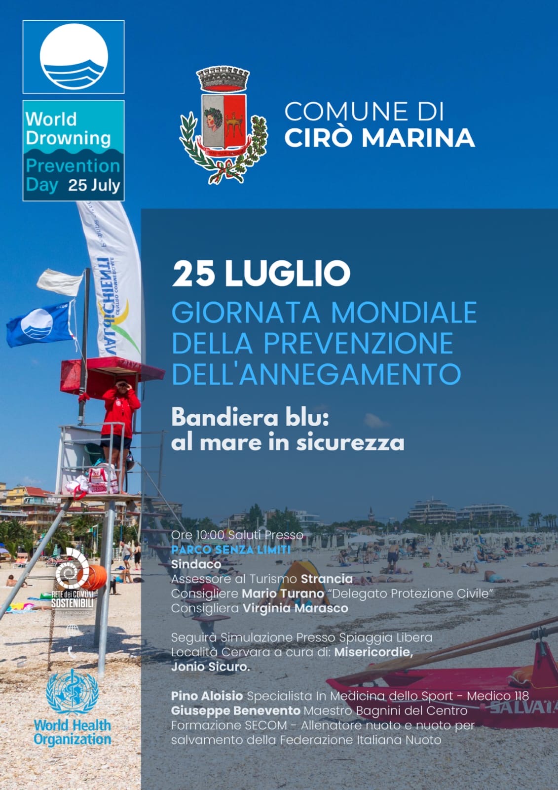 In occasione della Giornata Mondiale della Prevenzione dell’Annegamento, la città di Cirò Marina ha ospitato una significativa iniziativa all’insegna della sicurezza in mare, della formazione e della sensibilizzazione. Con il mare Jonio a fare da cornice, la manifestazione ha ribadito il valore fondamentale della prevenzione e dell’educazione civica in ambito sanitario e balneare.
