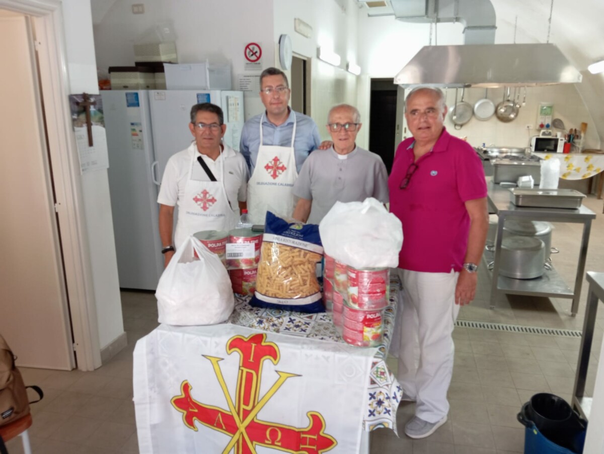 Il delegato vicario per la Calabria, Cavaliere di Gran Croce Aurelio Badolati, il rappresentante cittadino, Cavaliere di Grazia Antonio Oliverio, e il Cavaliere di Merito Vito Michele De Caro hanno dapprima fornito una ingente scorta di beni alimentari di primissima necessità e una corposa quantità di carne di pollo e, poi, in prima persona hanno preparato e servito il pranzo a decine di persone che hanno come sola forma di sostentamento la mensa “Padre Pio”. Alla donazione hanno altresì contribuito, pur non potendo presenziare personalmente, il Cavaliere di Grazia Nicola Oliverio e il Cavaliere di Merito Alessandro Cuomo.