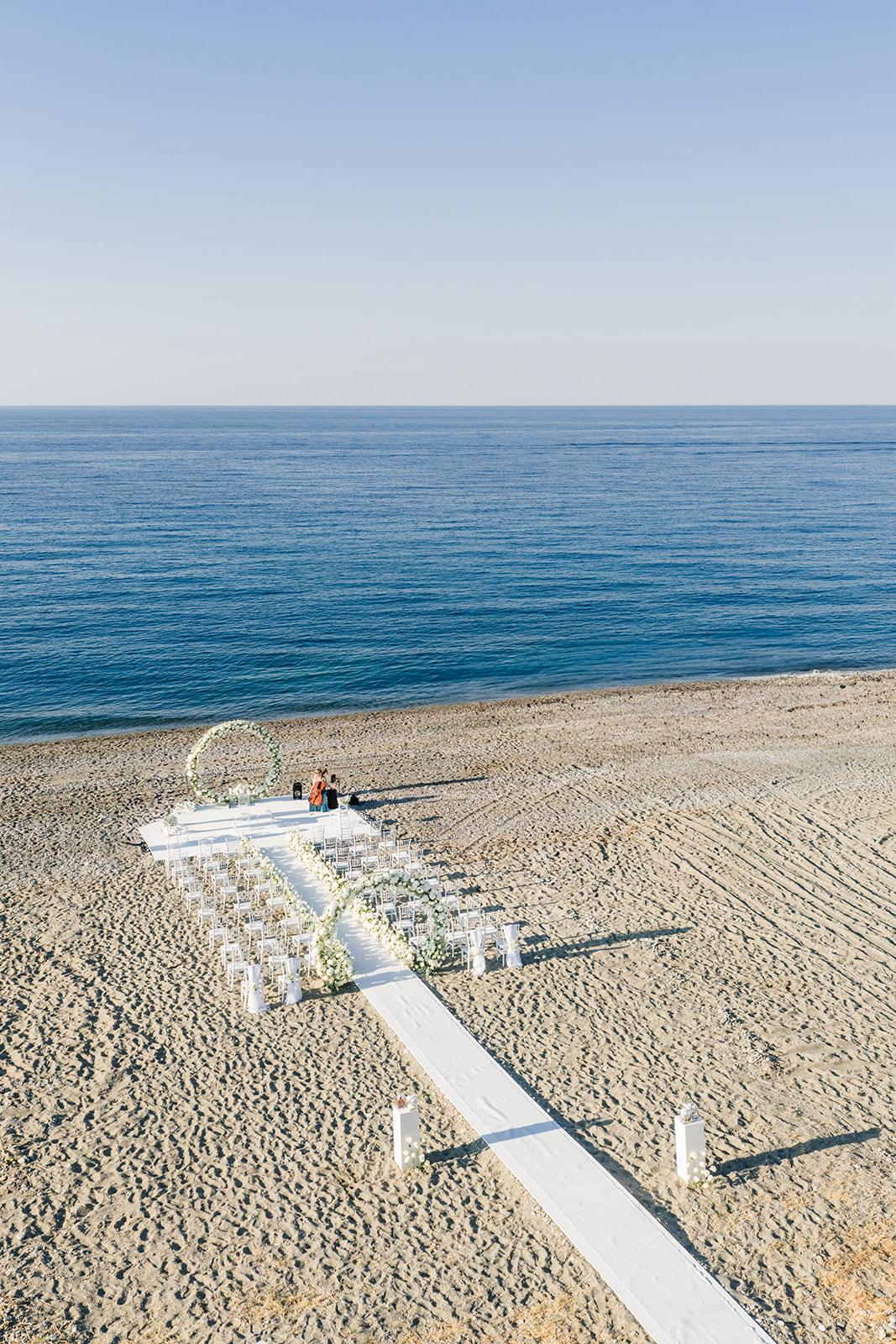 L’organizzazione dell’evento è stata curata dall’agenzia AC Wedding & Event Designer di Rende (Cosenza), che ha trasformato la spiaggia in un’elegante scenografia a cielo aperto, con allestimenti raffinati e dettagli studiati per emozionare.