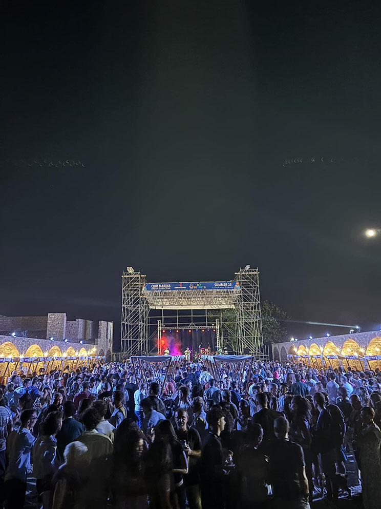 Cirò Marina, 12 agosto 2025 – Pensata e progettata come una vera festa di comunità, così è stata realmente la “Music & Wine Night” che chiuso l’edizione 2025 del Cirò Wine Festival. In migliaia sono accorsi da tutta la Calabria nella cornice suggestiva e magica dei Mercati Saraceni per brindare al riconoscimento DOCG ottenuto dal Consorzio di tutela di Cirò e Melissa per il Cirò Classico che entra così «a far parte di diritto del gotha del vino italiano– ha spiegato alla stampa il presidente dell’ente di tutela e valorizzazione, Carlo Siciliani – ottenendo un traguardo importante che per noi è un punto di arrivo ma anche di ripartenza per presentarsi ai mercati internazionali con un prodotto importante. Quello che stiamo vivendo è un momento importante per Cirò ma anche per l’intero mondo vitivinicolo calabrese. Celebriamo qui la storia del vino, la prima DOCG regionale e ci prepariamo ad un grande processo di promozione e valorizzazione che da gran de attenzione al terroir e alla tipicità. L’affetto straripante della gente che ha riempito Madonna di Mare per l’evento finale di questa edizione ci inorgoglisce e ci carica di responsabilità per fare sempre meglio e di più per la storia enologica del territorio e delle cantine che da generazioni mantengono viva una tradizione che non è solo produttiva, ma è anche artigianale, culturale, esperienziale».