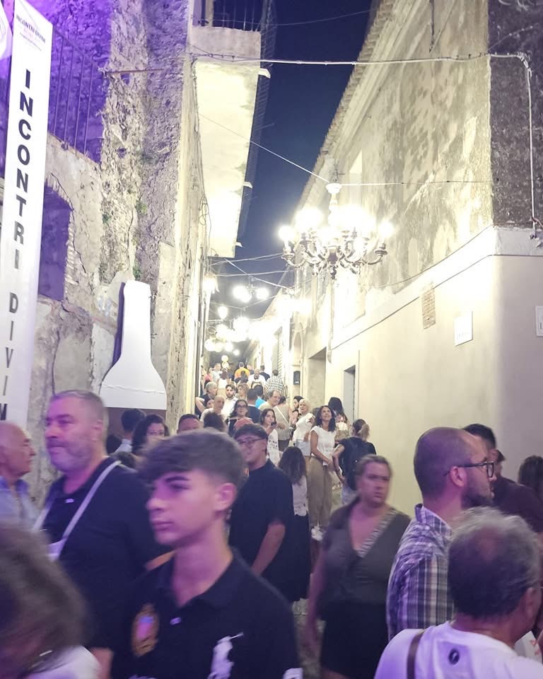 In una scenografia naturale fatta di antichi vicoli e case medievali, dalla zona Cannone fino a piazza della Repubblica, centinaia di bancarelle colorate di vino, dolci, formaggi e prodotti tipici hanno animato la notte, richiamando turisti da tutto il circondario. L’atmosfera è stata resa ancora più suggestiva dai candelabri appesi tra i vicoli di pietra, trasformando le vie del centro storico di Cirò in un palcoscenico a cielo aperto, dove cultura, gusto e identità si sono fuse in un’esperienza emozionante e coinvolgente.