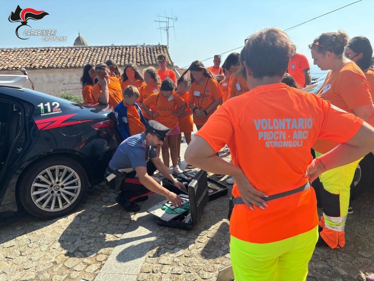 Nella mattinata del 18 agosto, i Carabinieri di Strongoli hanno ospitato quindici giovani tra ragazzi e ragazze che, nell’ambito del programma Anch’io sono la protezione civile, hanno visitato la sede della Stazione Carabinieri per approfondire, toccando con mano, i temi della legalità e dell’educazione civica. Durante l’incontro, i giovani hanno interagito con il Comandante di Compagnia e con i militari della Stazione, che, che, al fianco dei loro mezzi, hanno soddisfatto ogni curiosità sul 112 e sul pronto intervento, con particolare riferimento alle tecniche di sopralluogo, alle modalità di controllo su strada, alla rilevazione degli incidenti stradali e ai controlli con l’etilometro.