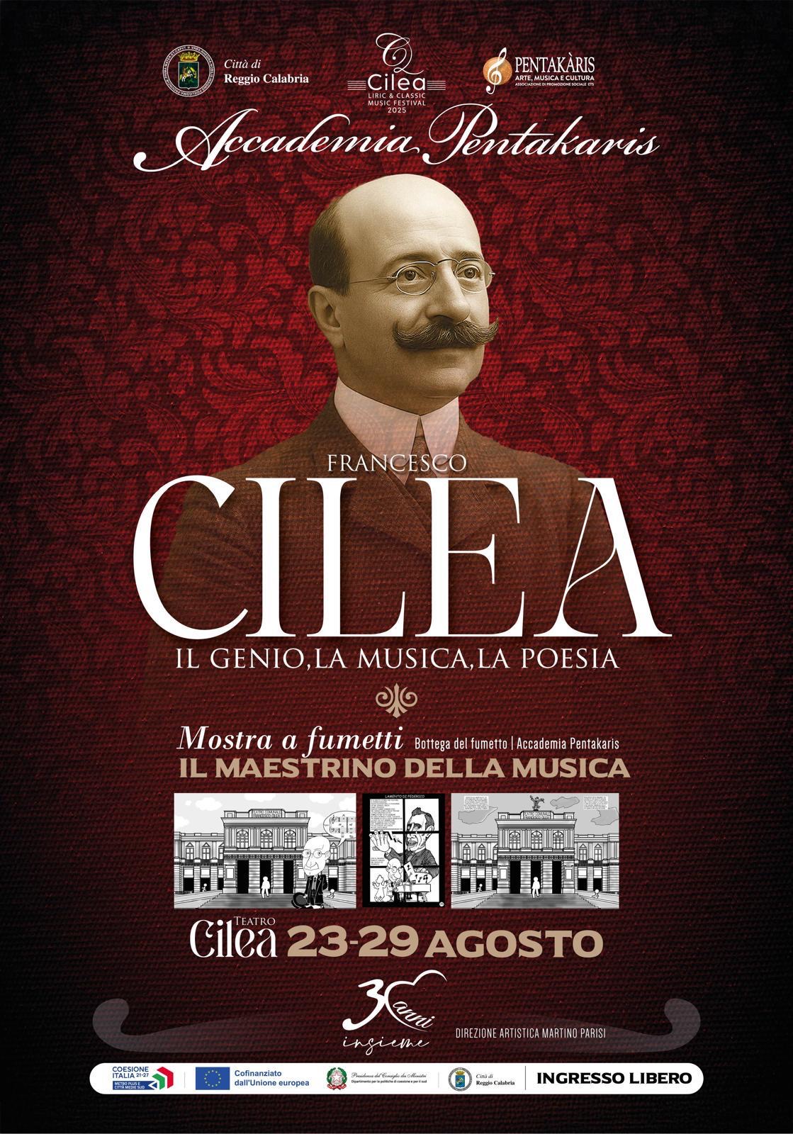 Le tavole esposte, che raccontano la vita di Cilea, sono state curate dal fumettista e drammaturgo Domenico Loddo che ha spiegato come la conoscenza approfondita della vita del compositore abbia consentito di tradurre in segno la sua essenza tracciandone una storia curiosa, oltre che interessante.
