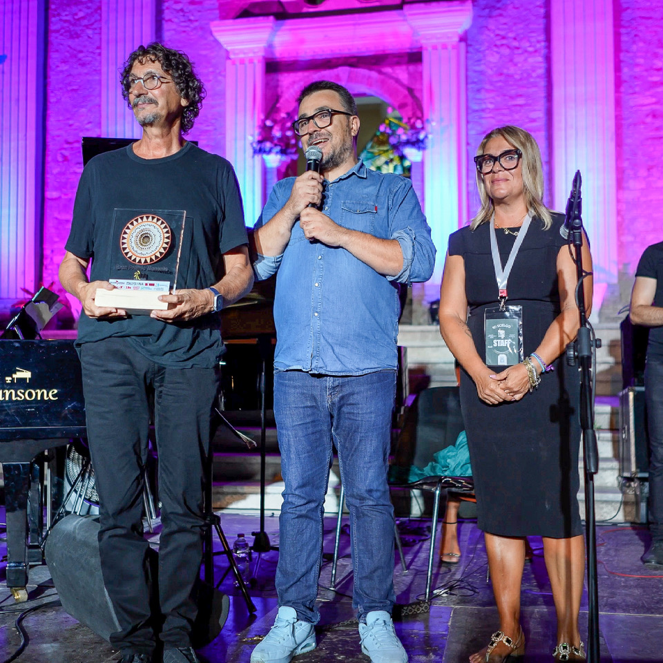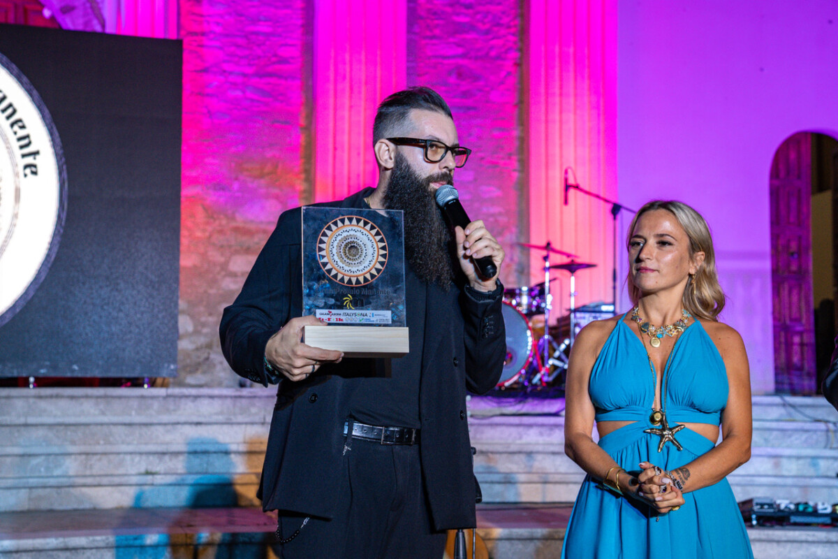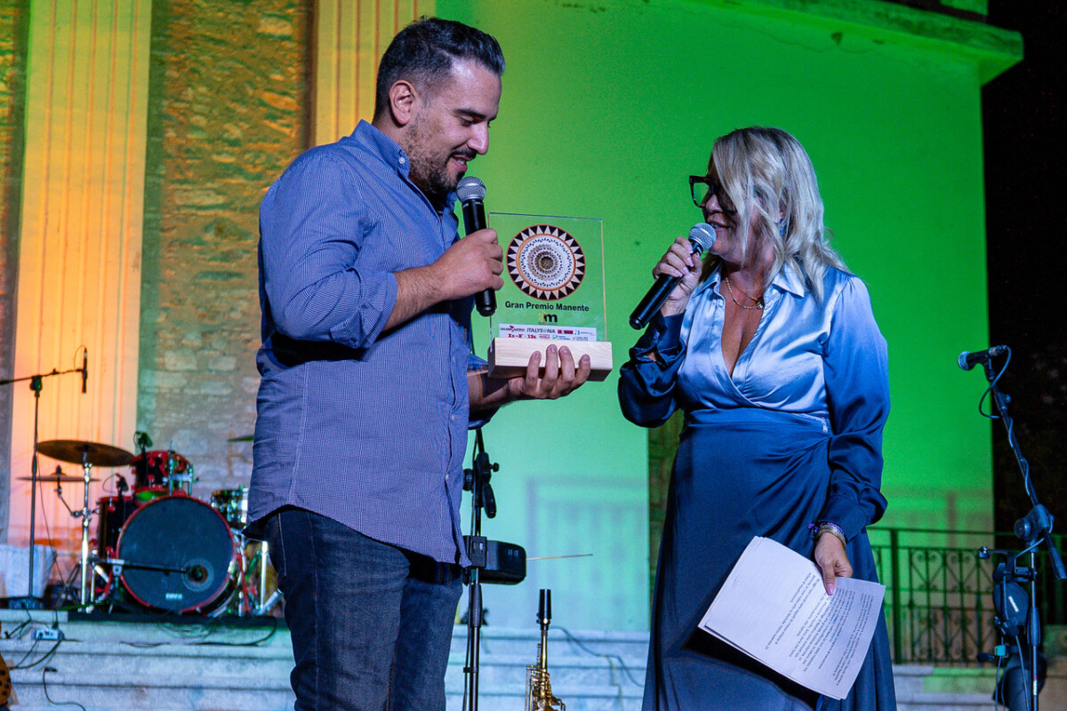 Mentre uno splendido celo stellato fa da tetto al pubblico parte la musica dei Parafonè. Ogni singola nota racconta 25 anni di ricerca, studio e innovazione. Un viaggio di chi ha deciso di proporre la musica popolare calabrese senza variarne l’essenza, utilizzando gli strumenti tramandati di padre in figlio come chitarra battente, zampogna, lira, organetto, tamburello, fischiotti. Strumenti antichi che lasciano però intravedere una straordinaria attualità in una continua ricerca sonora e di linguaggio. Considerato uno dei migliori gruppi di world music italiana, hanno creato la giusta atmosfera per l’arrivo sul palco di Alvin Tripodi con un intervento emozionante e ricco di contenuti. Già conosciuto al grande pubblico come leader del gruppo BEHIKE MORO con i quali ha vinto l’edizione 2017 del Gran Premio Manente, Alvin è un personaggio che sin da bambino si appassionava ad ascoltare storie e persone e da adulto ha deciso di raccontare la Calabria in tanti modi… Va in bici, esplora luoghi, ascolta la gente e crea contenuti che raccontano storie fuori dall’ordinario attraverso le emozioni di chi le ha vissute. Ascolto, osservazione, considerazione e descrizione sono parti integranti del suo lavoro che riporta in tv con “FALLA GIRARE”. Per questa sua opera L’Associazione Cult e Marasco Comunicazione gli hanno riconosciuto una menzione speciale al Premio Manente 2025.