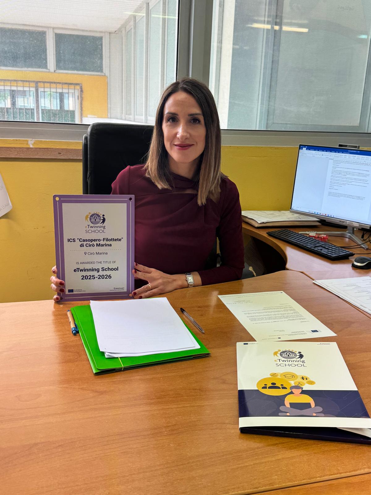 La Dirigente Scolastica dell’I.C. “Casopero-Filottete” Cirò Marina-Crucoli comunica con grande orgoglio che l’Istituto è stato premiato con il riconoscimento di “Scuola Etwinning” per il biennio solare 2025-2026.
