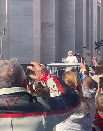 Dopo un lungo viaggio di oltre seicento chilometri, scandito da soste programmate, momenti di convivialità e tanta allegria, i partecipanti sono giunti a Frascati nel pomeriggio, dove hanno effettuato il check-in in albergo e trascorso la serata in una tipica “fraschetta” del territorio, immersi nell’atmosfera accogliente dei Castelli Romani. La mattina di sabato 4 ottobre, giorno di San Francesco d’Assisi, i motociclisti si sono ritrovati in Piazza San Pietro per vivere l’atteso incontro con il Santo Padre. In un’atmosfera di grande emozione e partecipazione, Papa Leone XIV ha celebrato la Santa Messa per i Motociclisti e impartito la Benedizione dei Caschi, gesto simbolico di protezione e affidamento per tutti coloro che percorrono le strade in moto.