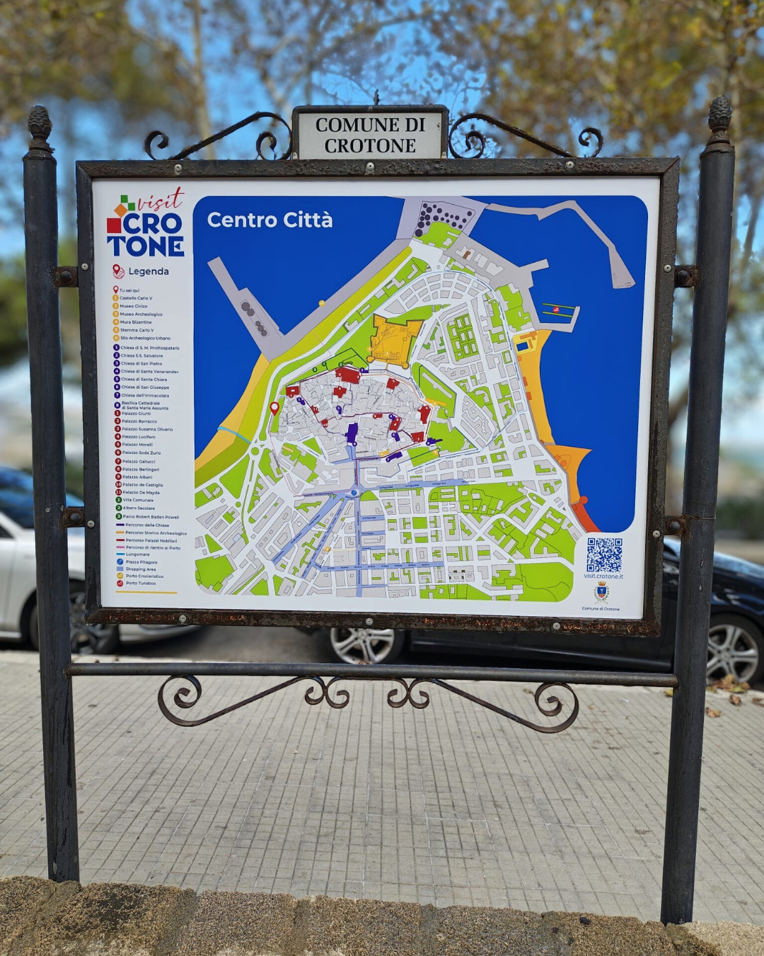 Ogni tabella sarà dotata di QR code che rimandano al portale visit.crotone.it, dove è possibile consultare mappe interattive, percorsi tematici e punti di interesse, disponibili in italiano, inglese e tedesco.