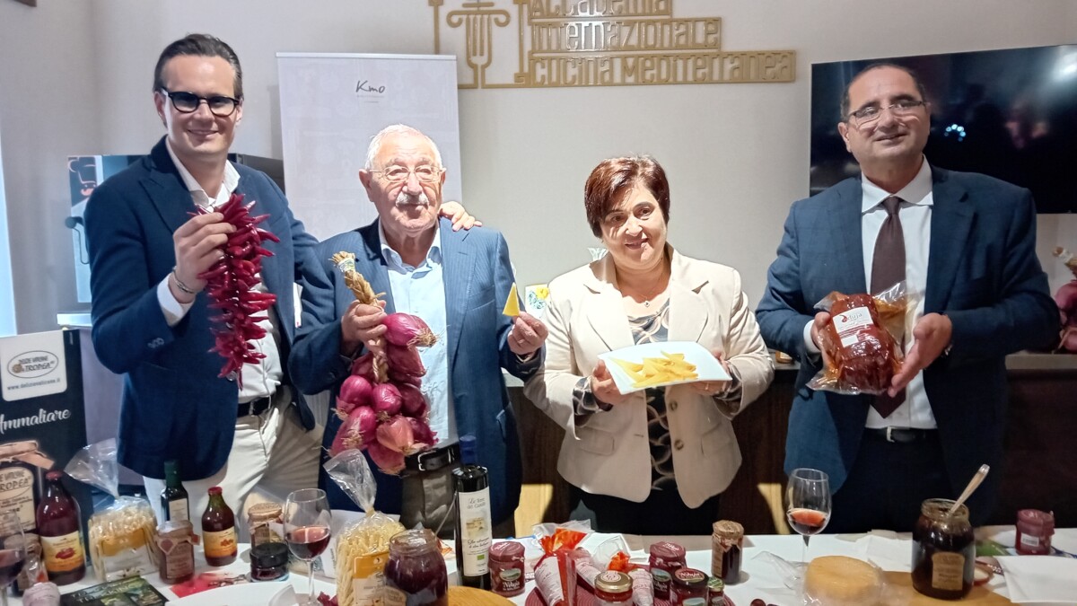 Nella sede dell’Accademia internazionale della cucina mediterranea si è svolto uno show cooking con l’impiego dei tre prodotti fortemente identitari dell’area vibonese. «È una bellissima iniziativa quella organizzata qui a Spilinga» ha commentato Pasquale Pugliese, componente del Consiglio d’Amministrazione del Consorzio ‘nduja di Spilinga, anche in rappresentanza di Giuseppina Arena del Consorzio per la tutela del pecorino del Monte Poro DOP e di Domenico Furchì del Consorzio di tutela della cipolla rossa di Tropea IGP. «Il nostro intento è quello di far conoscere i nostri prodotti, li abbiamo fatti assaggiare ai nostri ospiti e fatti degustare nella loro veste migliore». Presente anche il presidente dell’Accademia internazionale della cucina mediterranea, Corrado Rossi.