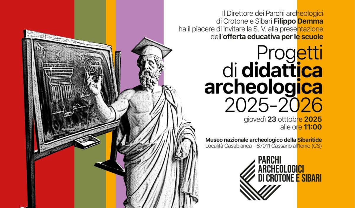 Giovedì 23 ottobre, alle ore 11.00, presso il Museo e Parco Archeologico Nazionale di Sibari, si terrà l’incontro di presentazione dei progetti educativi rivolti alle scuole, promossi dai Parchi archeologici di Crotone e Sibari.