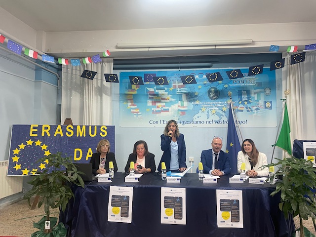 Si è svolto con grande partecipazione l’incontro “Erasmus Day – L’importanza dell’internazionalizzazione nella scuola”, promosso dall’Istituto Comprensivo Papanice Alfieri per riflettere sul valore formativo dei programmi europei Erasmus+ ed eTwinning. L’evento ha rappresentato un’occasione di confronto e condivisione sulle opportunità che l’Europa offre al mondo dell’istruzione. L’iniziativa si è aperta con i saluti della dirigente scolastica Concetta Masi, che ha ribadito l’importanza di costruire una scuola aperta e capace di dialogare con l’Europa. “Il nostro obiettivo- ha spiegato Masi – è quello di portare la nostra scuola in Europa.