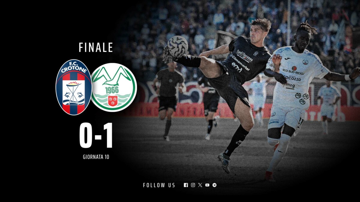 CROTONE: Merelli; Leo (16’st Stronati), Berra (16’st Cargnelutti), Di Pasquale, Guerra (21’st Groppelli); Sandri, Gallo (16’st Piovanello); Zunno (30’st Bruno), Gomez, Maggio; Murano. A disp.: Sala, Martino, Cocetta, Vrenna, Marazzotti, Calvano. All. Longo