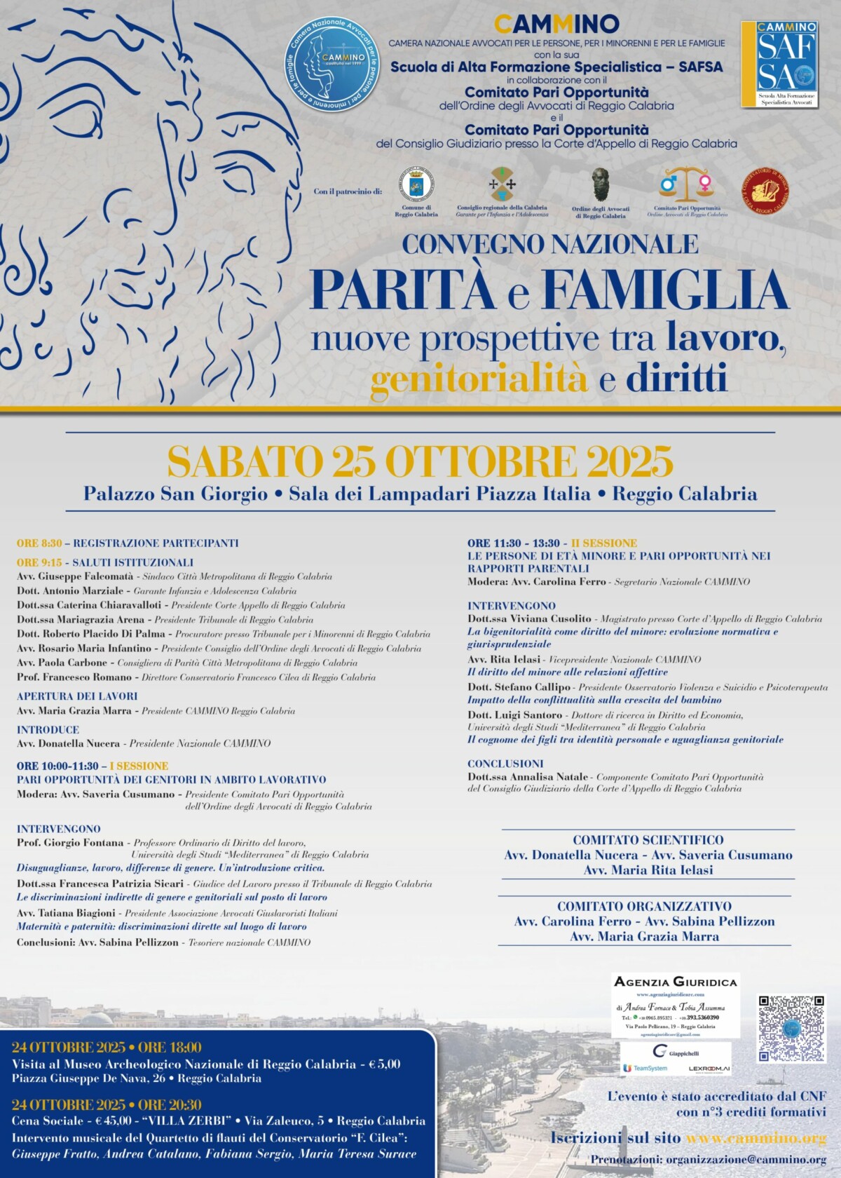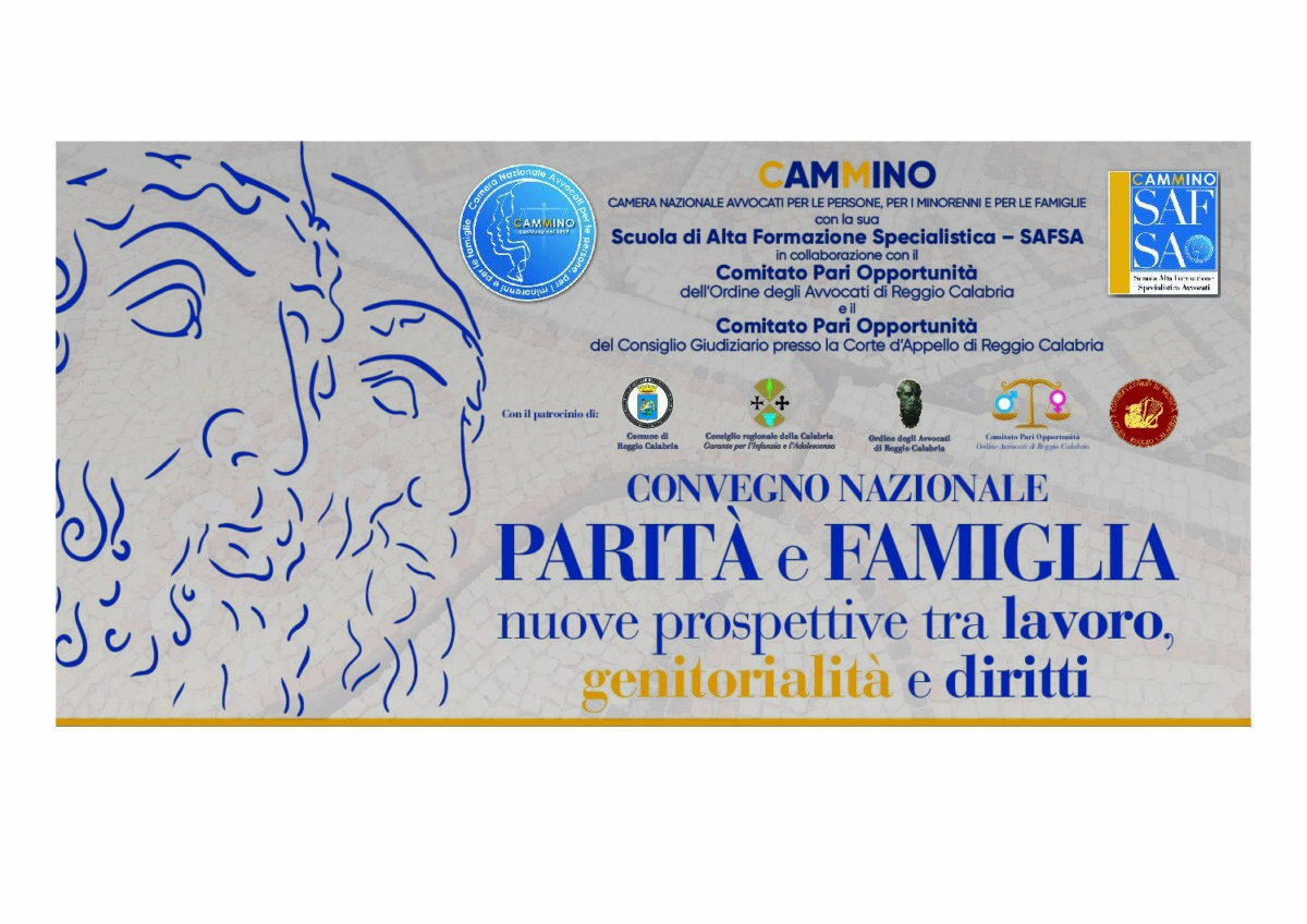 Sabato 25 ottobre 2025, presso la Sala dei Lampadari di Palazzo San Giorgio a Reggio Calabria, si terrà il Convegno Nazionale promosso da CAMMINO – Camera Nazionale Avvocati per le Persone, per i Minorenni e per le Famiglie, dal titolo “Parità e Famiglia: nuove prospettive tra lavoro, genitorialità e diritti”.