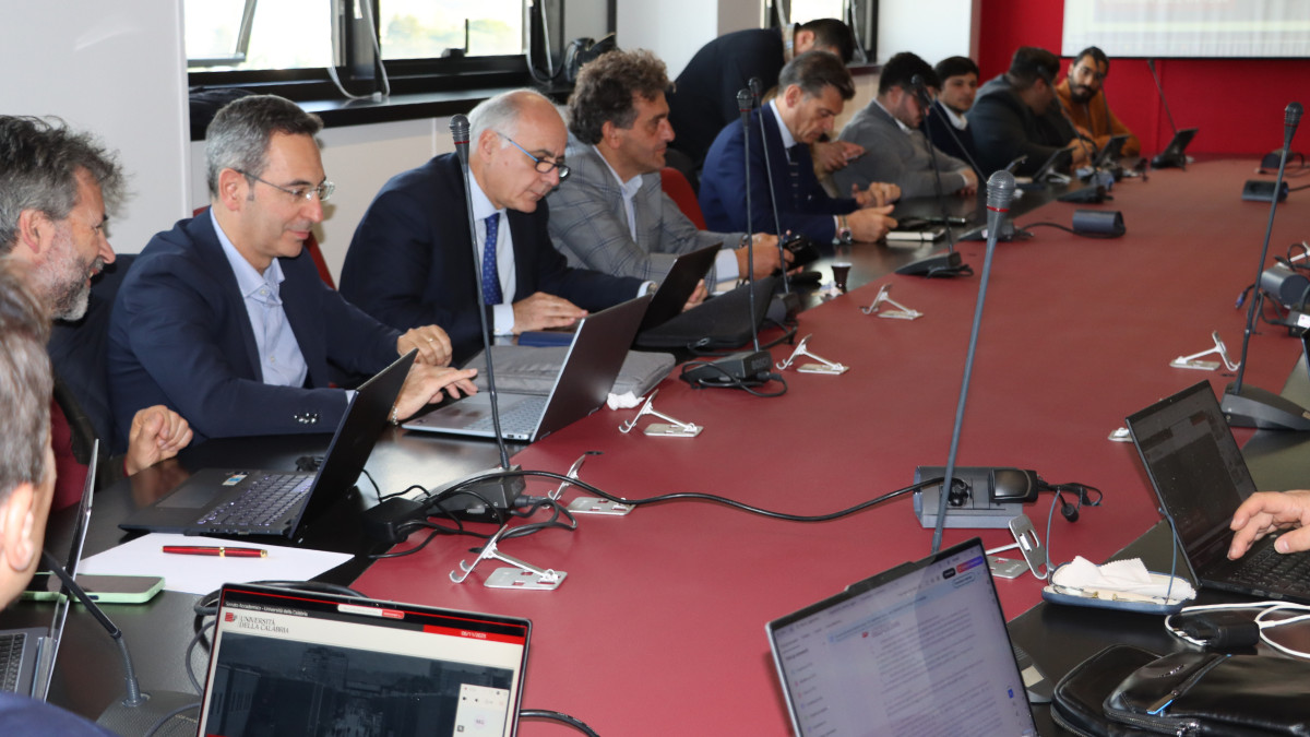Prima seduta e insediamento ufficiale oggi per il nuovo Senato Accademico dell’Università della Calabria. L’incontro si è svolto questo pomeriggio presso la Sala Consiglio del cubo 25B. Una scelta non soltanto logistica, ma anche simbolica: il rettore Gianluigi Greco, che per statuto presiede il Senato, ha inteso infatti riportare le sedute dell’organo di rappresentanza e di governo scientifico e didattico dell’Ateneo in uno spazio capace di stimolare la partecipazione collegiale e un confronto diretto tra i suoi componenti. Ha così scelto di abbandonare la sala dell’University Club, concepita per attività di formazione e convegnistica, utilizzata come sede delle riunioni del Senato dal periodo del Covid in poi.
