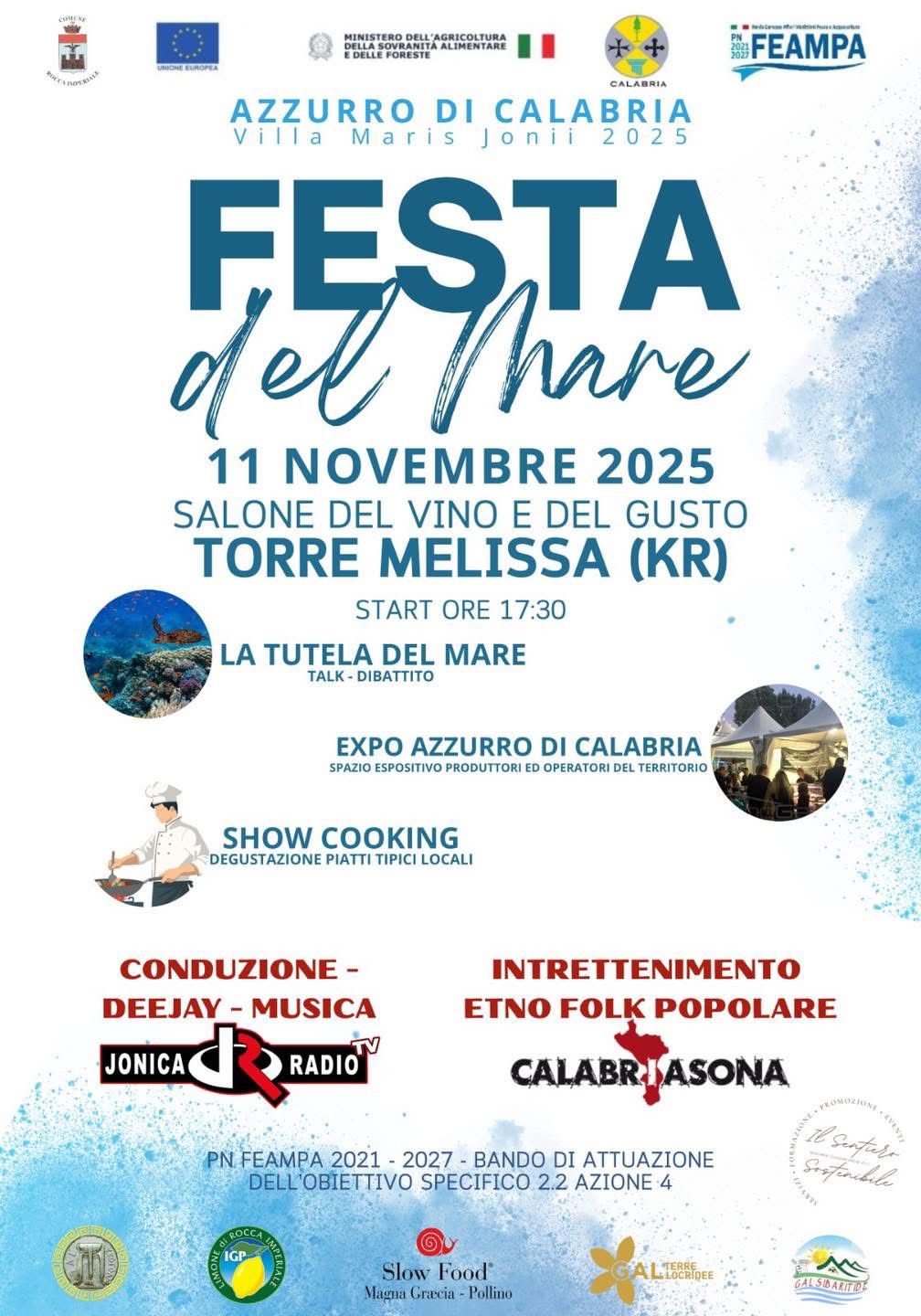 Questa sera il borgo costiero di Torre Melissa sarà protagonista della “Festa del Mare – Azzurro di Calabria, Villa Maris Jonii 2025”, un evento che unisce cultura, gastronomia e intrattenimento per promuovere la valorizzazione e la tutela del patrimonio marino calabrese.