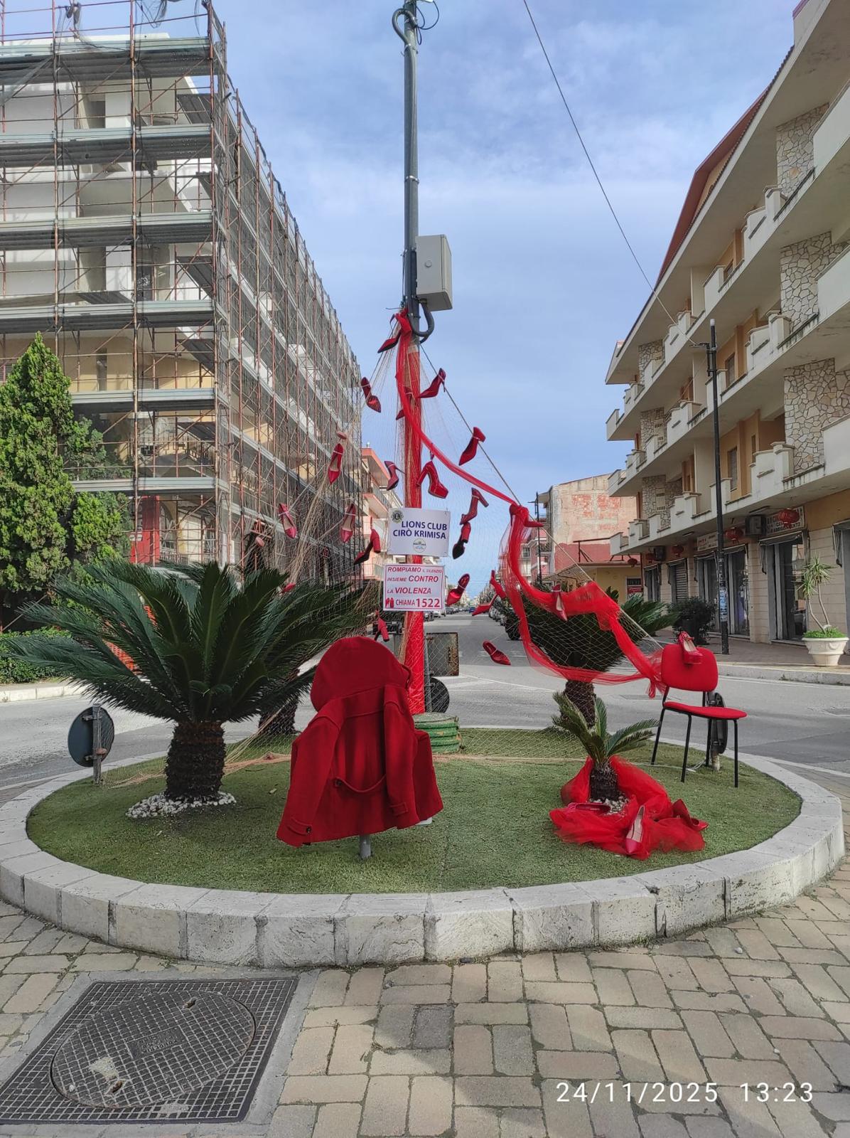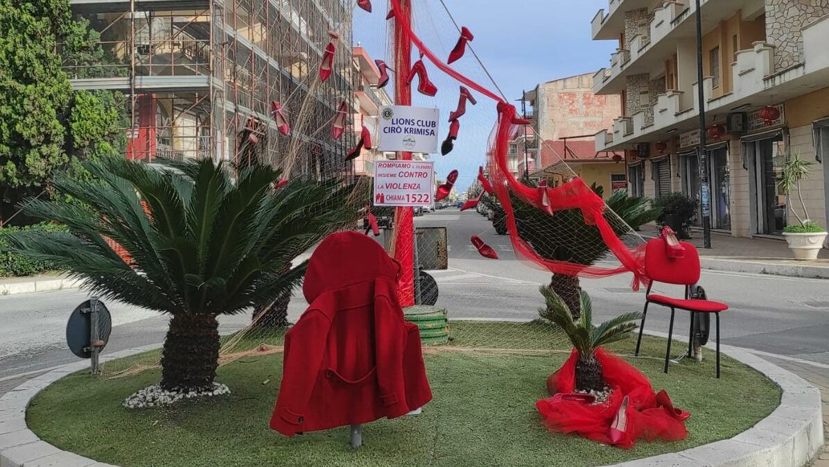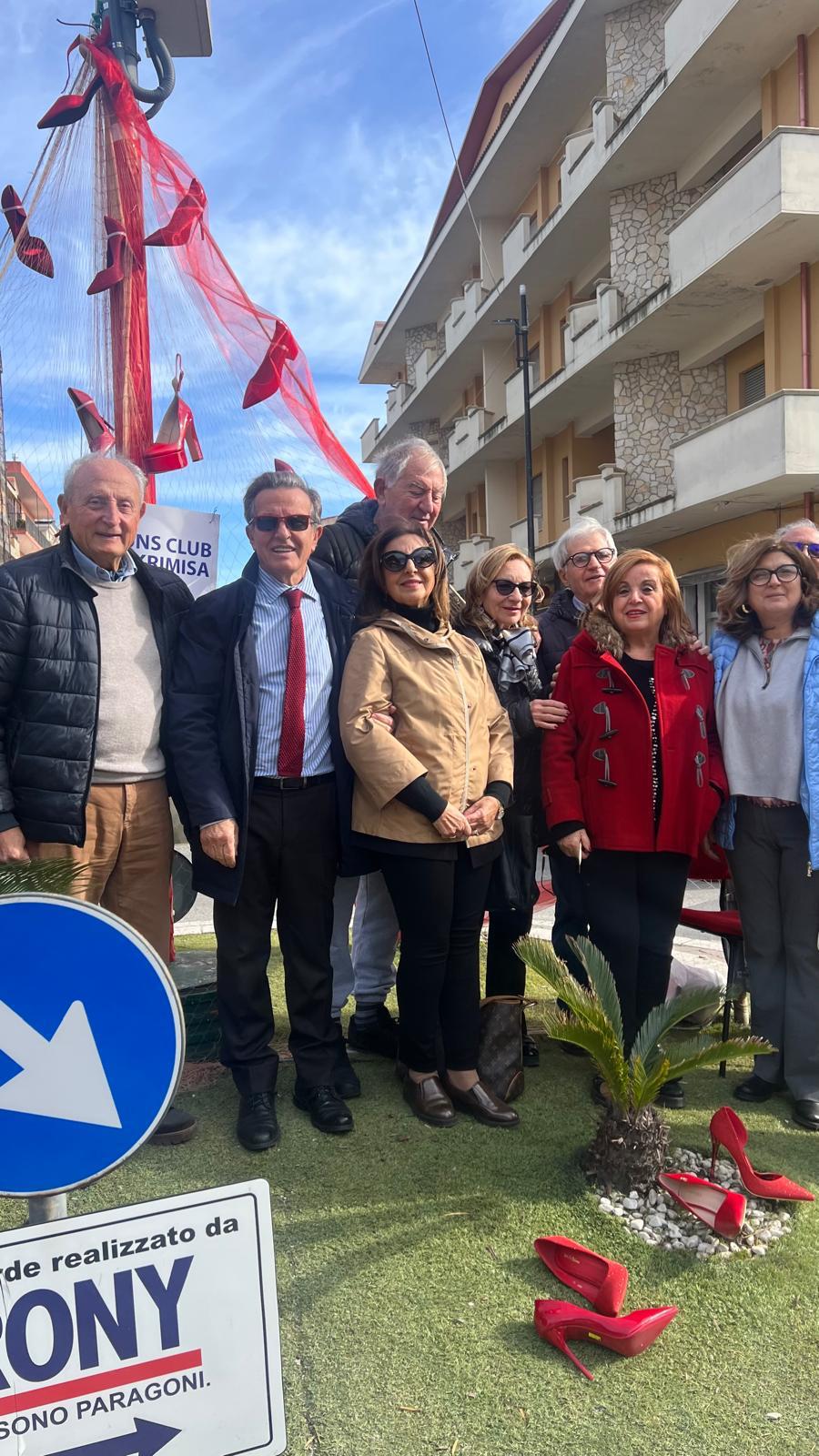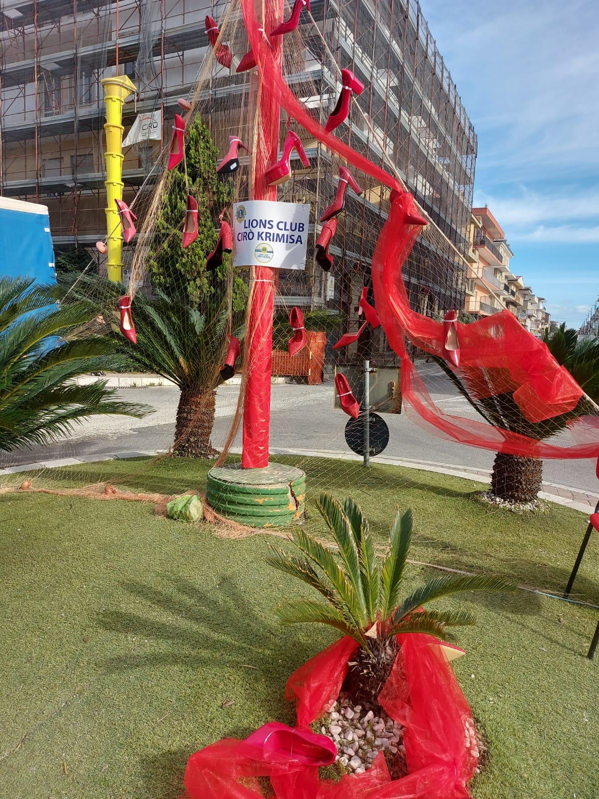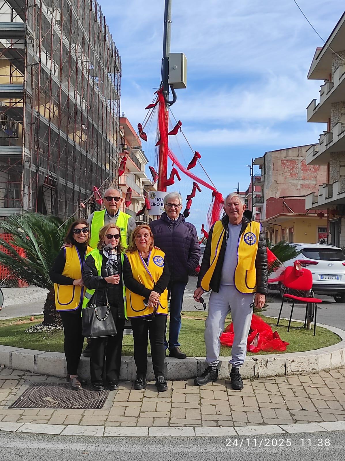 Simbolicamente e con l’autorizzazione dell’amministrazione comunale, la Presidente Orsola Siciliani e una rappresentanza dei soci del Lions Club  Cirò Krimisa, a nome di tutto il Club, hanno realizzato una rete con delle scarpe rosse per sensibilizzare la comunità di Cirò Marina.