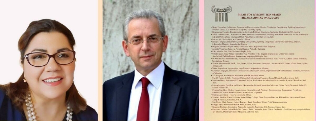 La scrittrice e poetessa internazionale Francesca Gallello Gabriel Italo Nel Gòmez è stata recentemente invitata dal Presidente Yannis Fikas a entrare nel prestigioso Circolo degli Amici dell’Accademia di Farsala in Grecia, accanto a figure di rilievo come il Ministro Dimitris Papastergiou, l’attrice Angela Gerekou e la Vicesindaca Irene Daifa. L’invito, accolto con profonda emozione, rappresenta un riconoscimento dell’impegno culturale e poetico di Francesca, oltre che un ponte ideale tra Calabria e Grecia—terre unite da radici antiche.