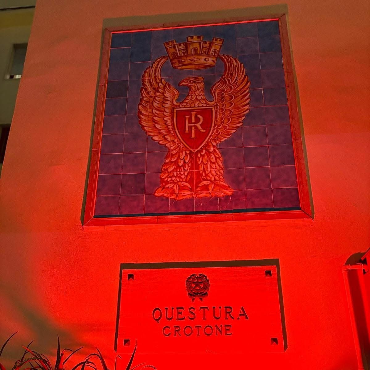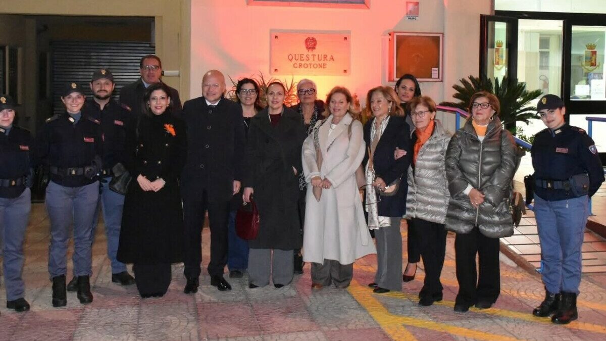 Per l’occasione, la Questura di Crotone si è illuminata di arancione, simbolo di energia positiva e speranza, colore scelto per rappresentare l’impegno collettivo nella promozione di un futuro libero da ogni forma di violenza basata sul genere.