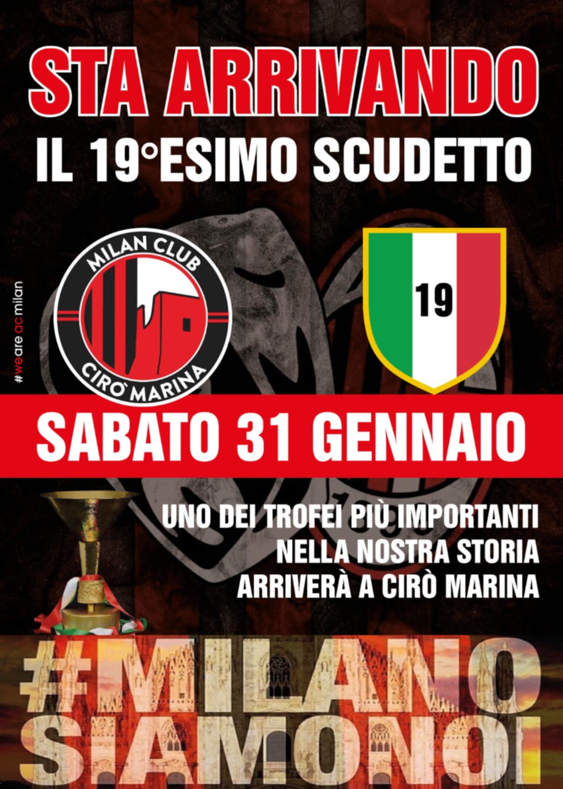 Il Milan Club Cirò Marina continua a stupire. Per il quarto anno consecutivo, infatti, il club rossonero locale porterà nel nostro territorio un pezzo di storia del Milan, confermandosi una realtà attivissima e fortemente radicata nella comunità. Dopo la Champions League del 2003, dopo l’arrivo della leggenda Franco Baresi, dopo l’iniziativa del Milan Academy Junior Camp, è ora il momento di un altro simbolo indelebile: il 19º Scudetto, conquistato dal Milan nella stagione 2021/2022.
