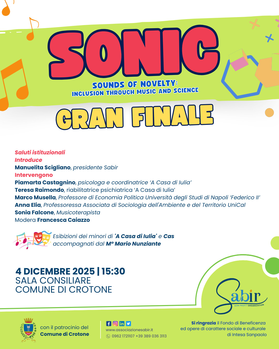 Come da locandina in allegato, l’evento sarà aperto da un’introduzione della presidente di Sabir Manuelita Scigliano, seguita dagli interventi di: