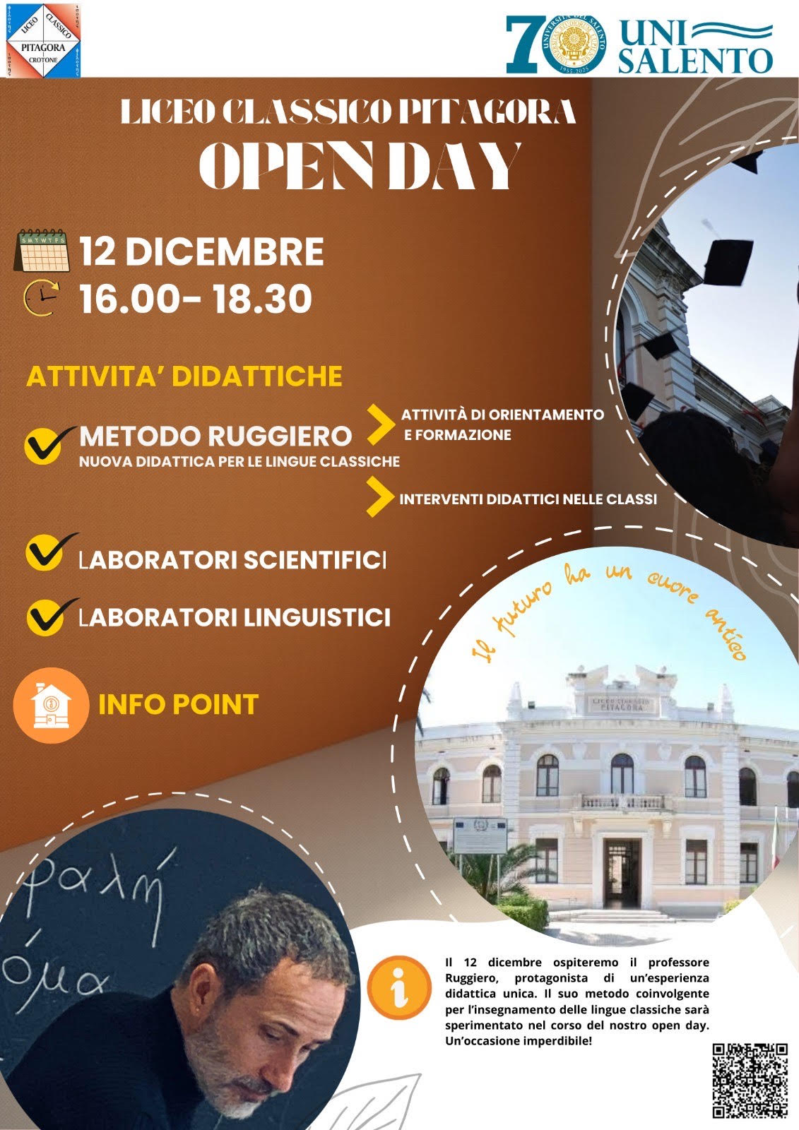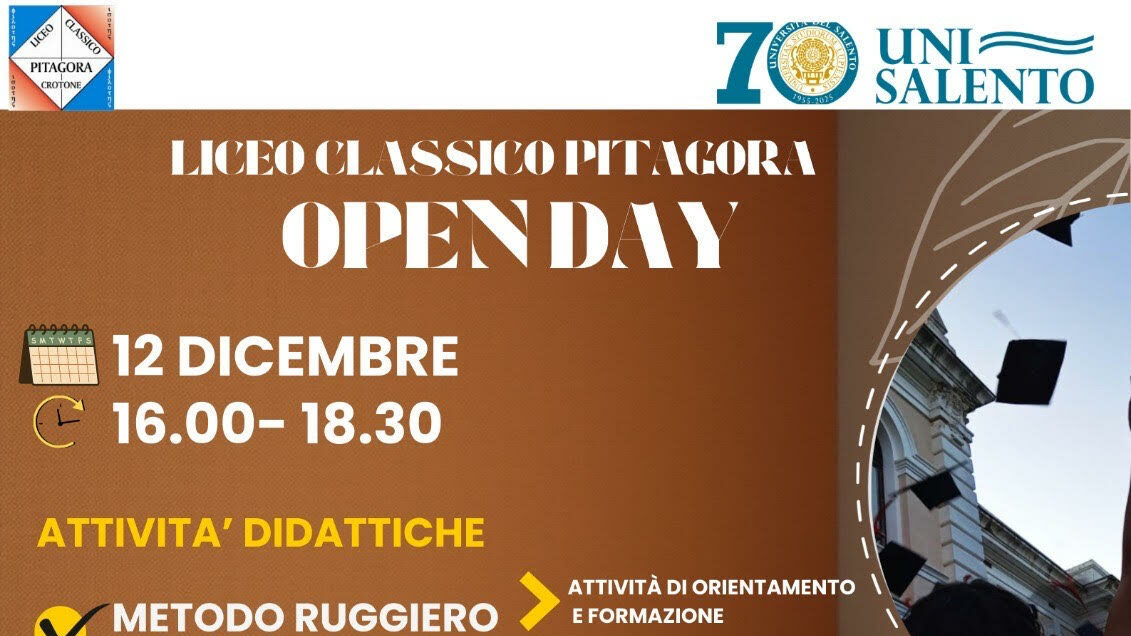 Crotone – Il Liceo Classico Pitagora si prepara ad accogliere studenti e famiglie in occasione dell’Open day del 12 dicembre 2025, dalle 16:00 alle 18:30. L’incontro sarà l’occasione per presentare un approccio innovativo all’apprendimento delle lingue classiche: il “Metodo Ruggiero”.