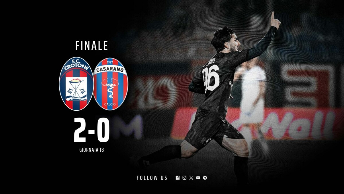 CROTONE: Merelli; Cocetta, Berra (12’st Cargnelutti), Di Pasquale, Guerra; Vinicius (41’st Calvano), Sandri; Zunno, Gomez (27’st Gallo), Maggio (27’st Piovanello); Murano (41’st Perlingieri). A disp.: Sala, Martino, Leo, Bruno, Groppelli, Marazzotti, Vrenna, Stronati, Ricci. All. Longo