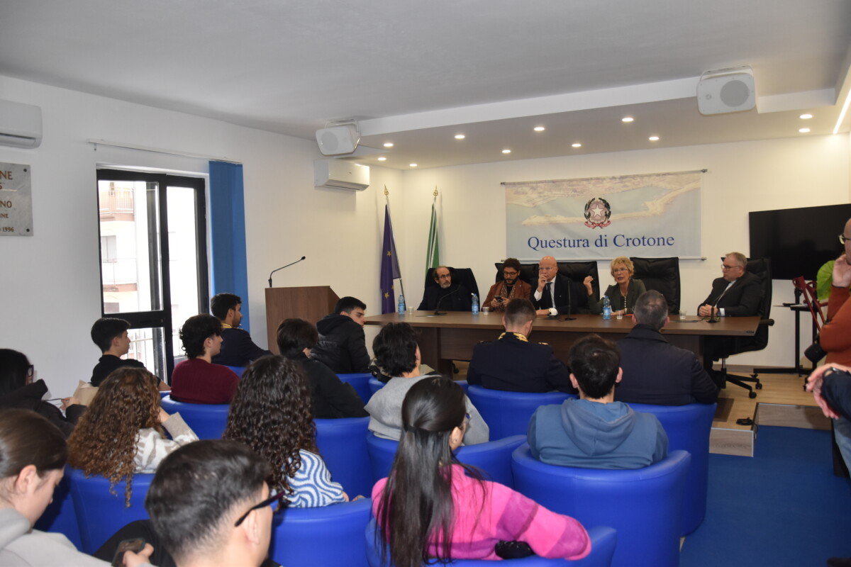 Ieri mattina, presso la Questura di Crotone, si è svolto un incontro con i giovani studenti del Liceo Scientifico “Filolao”, nell’ambito del progetto “La legalità come compagna di viaggio”, iniziativa finalizzata alla promozione della cultura della legalità e della partecipazione attiva delle nuove generazioni.