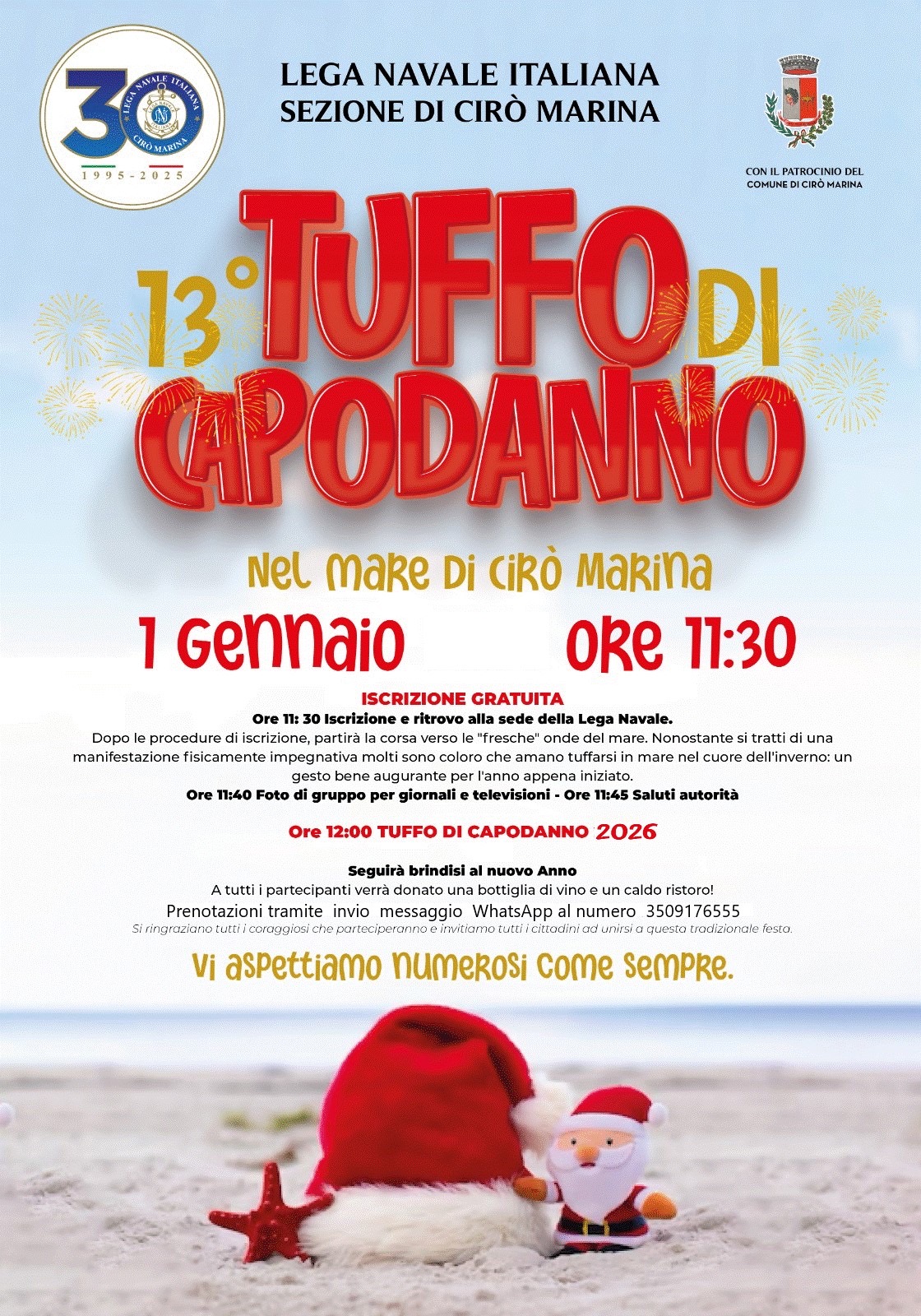 La Lega Navale Italiana – Sezione di Cirò Marina rinnova l’invito a tutta la cittadinanza a prendere parte a questo appuntamento ormai simbolo del Capodanno sul mare, con l’auspicio di ritrovarsi numerosi, come sempre, per iniziare insieme il 2026 con energia, coraggio e spirito positivo.