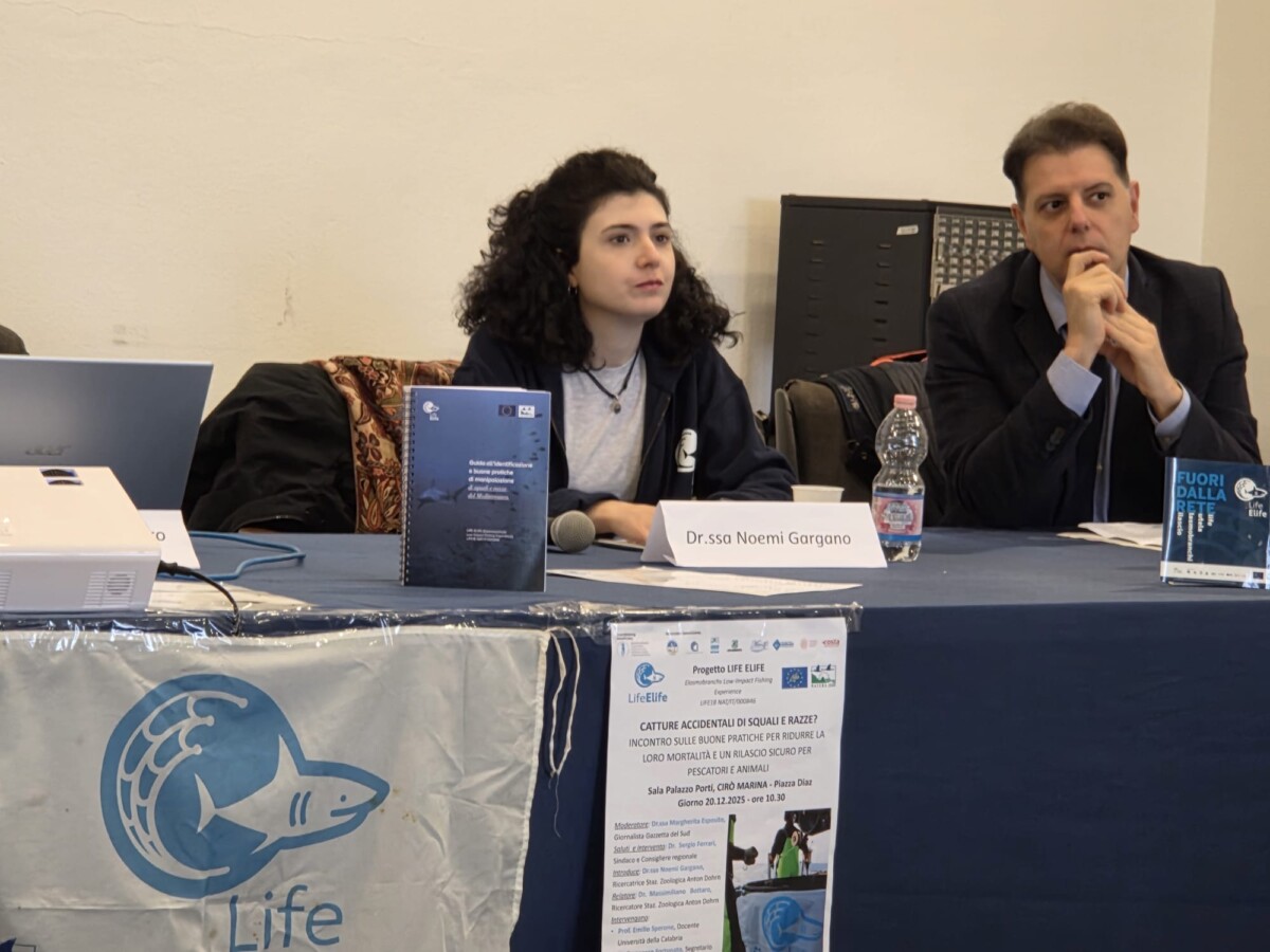 Si è svolto ieri, sabato 20 dicembre 2025, presso la Sala del Palazzo Porti di Cirò Marina, l’incontro pubblico promosso nell’ambito del progetto LIFE ELIFE – Elasmobranchs Low-Impact Fishing Experience, dedicato al tema delle catture accidentali di squali e razze e alle buone pratiche per ridurne la mortalità, garantendo al tempo stesso la sicurezza dei pescatori e degli animali.