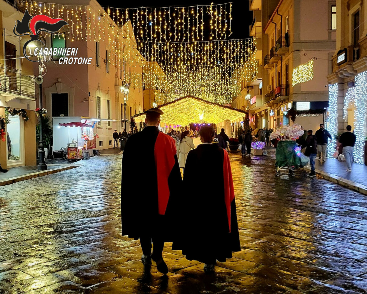 L’attività si è sviluppata attraverso mirati controlli alla circolazione stradale, affiancati da servizi di vigilanza nel centro cittadino svolti da pattuglie appiedate, con l’obiettivo di assicurare una presenza più visibile e costante delle forze dell’ordine e di rafforzare il senso di sicurezza percepito dalla popolazione. La scelta di impiegare militari a piedi nelle aree a maggiore afflusso consente infatti un contatto diretto con i cittadini, favorendo l’ascolto delle esigenze del territorio e una più efficace azione di prevenzione. L’atmosfera natalizia che si respira quest’anno nel cuore di Crotone si coniuga perfettamente con la tradizionale uniforme con mantella.