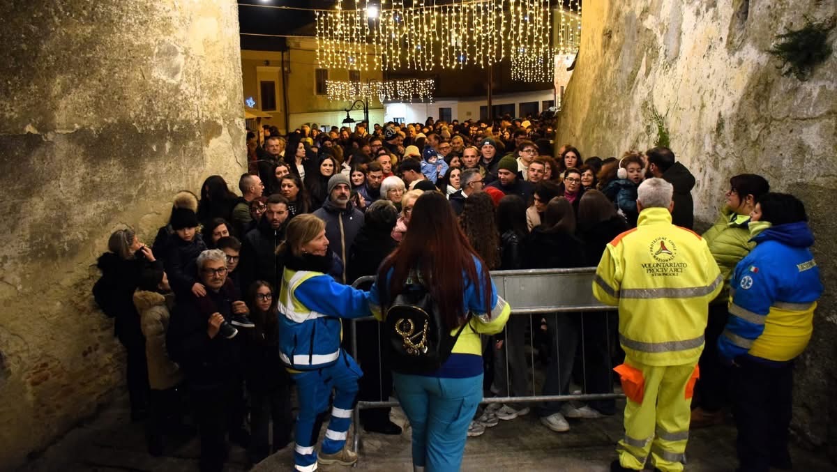 Tra antiche botteghe, gesti lenti e sguardi autentici, il racconto della Natività ha preso forma passo dopo passo. Ogni scena parlava di vita quotidiana, di lavoro, di attesa, fino a giungere al cuore del Presepe, dove la nascita di Gesù ha ricordato a tutti il senso più vero del Natale: Dio che si fa vicino, fragile e presente. Via Spera del Sole ha ospitato la XV Edizione un momento di fede e condivisione che, nel tempo del Natale, ha permesso alla comunità di ritrovarsi attorno al mistero della Natività; un evento di profondo valore religioso, culturale e sociale che ha saputo rinnovare il senso di comunità e di appartenenza. Un appuntamento che, anno dopo anno, ha richiamato numerosi visitatori e fedeli, trasformando il cuore del borgo in una vera e propria Betlemme a cielo aperto. Tra luci soffuse, antichi mestieri, costumi d’epoca e scene di vita quotidiana, il presepe vivente ha offerto un’esperienza immersiva capace di emozionare grandi e piccoli. A rendere l’atmosfera ancora più viva sono stati 200 attori non professionisti, tutti del posto, coinvolti nell’allestimento di quadri e mestieri dell’epoca, capaci di restituire con fedeltà gli usi e la quotidianità del passato. Le ambientazioni, curate con attenzione e fedeltà storica, hanno valorizzato scorci significativi del centro storico, offrendo al pubblico un’esperienza intensa e partecipata, restituendo un’atmosfera di raccoglimento, luce e speranza, elementi centrali del messaggio natalizio. Fulcro del percorso è stato la Capanna della Natività, dove: il piccolo Gesù è stato interpretato da Salvatore Esposito, la Madonna da Barbara Grillo; San Giuseppe da Francesco Esposito. Come d’incanto le porte dei locali bassi di via Spera del sole, si sono aperte e riempite d’immagini antiche grazie alla creatività dei tanti volontari. C’è chi ha rispolverato angoli ed oggetti antichi, chi trasportato utensili e arredi che giacevano abbondonati, chi illuminato i locali che erano rimasti silenziosi e senza corrente elettrica, chi si è adoperato per pulire strade, sgombrare impedimenti, chi suggerito ed offerto soluzioni per l’abbigliamento dei protagonisti, chi ha accettato di rappresentare la Sacra Famiglia. Tutti, stretti in comunione, verso un unico traguardo: quello di allestire un presepe memorabile, affascinante e stimolante. Con questo spirito sono state allestite 17 scene rappresentate con: la Sacra Famiglia (gruppo Fabbricieri), Lavandaia (Associazione Aquila) le Massaie (gruppo Marta), il Panettiere (Corale del Vescovado), le Filatrici (Ass. Tutti per Uno), il Fruttivendolo, il Pescivendolo (Comitato Feste S. Maria delle Grazie), le Ricamatrici (gruppo marina di Strongoli), la Locanda (Pro Loco); ed ancora: il Calzolaio, le Lavorazioni delle Fave, Tappetaie e Cestaie, lavorazione di Sale e Pepe, Pastori e Contadini, il Falegname.
