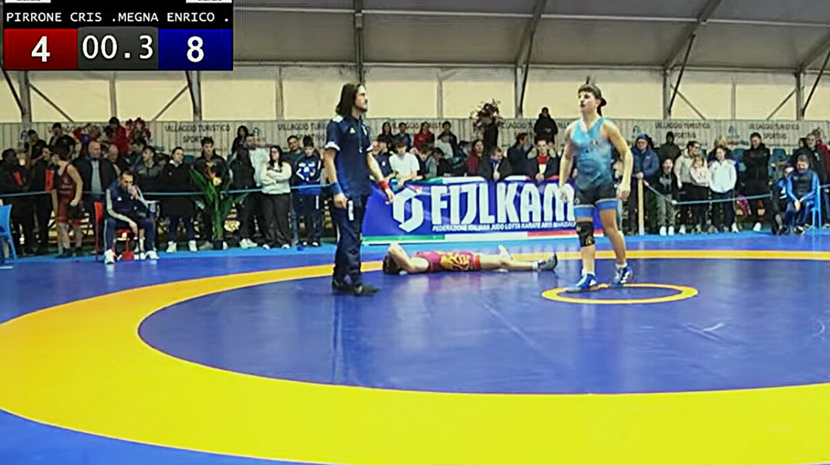 Proprio nella competizione di apertura, dedicata agli U15, è stato protagonista il giovane crotonese Enrico Megna pupillo del settore Lotta Olimpica dell’Accademia Karate Crotone, che nella specialità Lotta Libera maschile, ha conquistato la medaglia d’Oro nella categoria 62kg. E’ stata una finale mozzafiato che ha visto il crotonese opposto al bravo rappresentante delle Fiamme Oro che è andato subito in vantaggio di 4 punti. Ma, Enrico Megna, non si è fatto intimidire e ha colto al volo i suggerimenti dell’angolo riuscendo, con grande prontezza e volontà, a ribaltare il risultato per 8 a 4 in suo favore, tra gli applausi del pubblico e la esultanza del papà Mario.