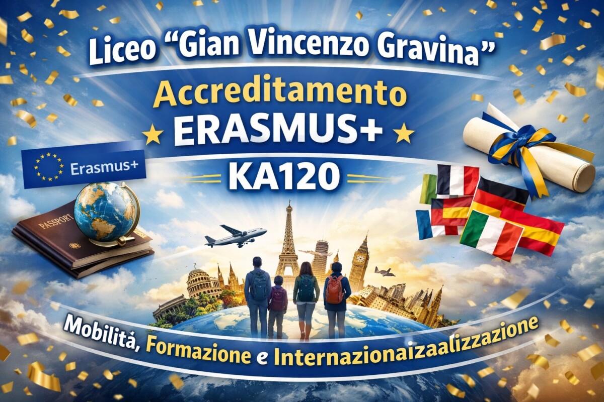 Il Liceo “Gian Vincenzo Gravina” di Crotone ha ottenuto il prestigioso Accreditamento Erasmus+ KA120, un importante riconoscimento che consentirà all’Istituto di accedere in modo continuativo ai finanziamenti europei per la realizzazione di progetti di mobilità internazionale rivolti a studenti, docenti e personale scolastico.