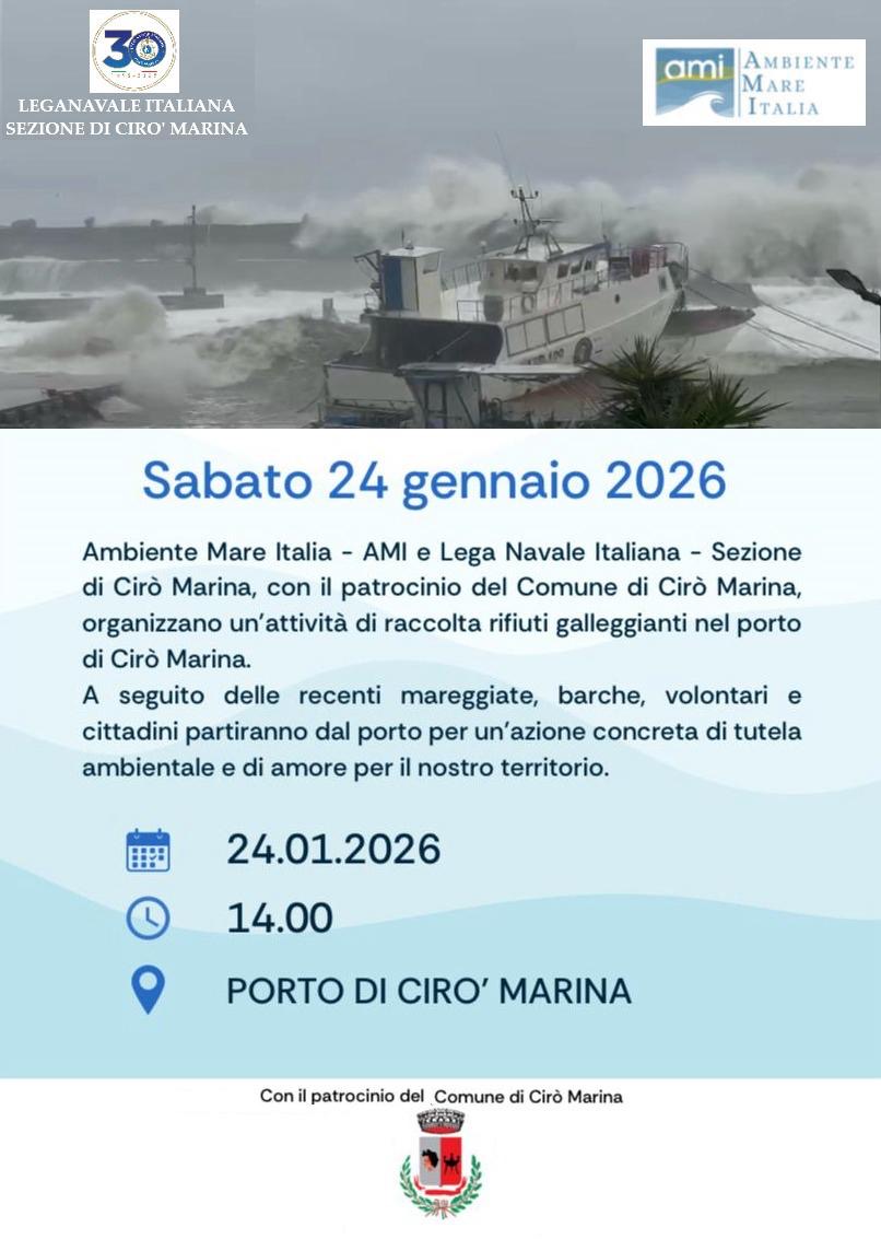 È dall’impegno di Ambiente Mare Italia – AMI che prende forma la risposta del territorio dopo il passaggio devastante del ciclone Harry. In collaborazione con la Lega Navale Sezione di Cirò Marina, AMI ha promosso e coordinato un’importante iniziativa di raccolta dei rifiuti nel porto della città calabrese, trasformando il dopo-ciclone in un’occasione di responsabilità e cura del mare.