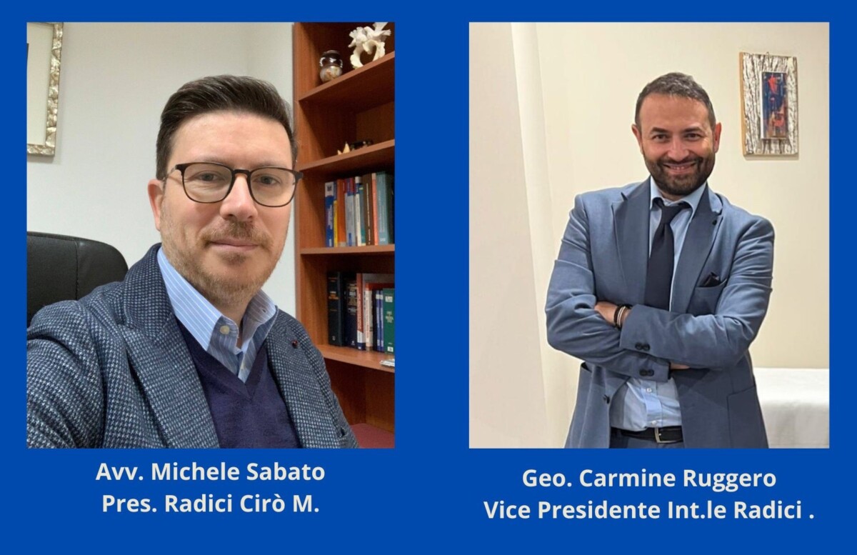 È stato inoltre nominato Vice Presidente Internazionale il Geom. Carmine Ruggero, geometra nato a Cirò Marinail 01/ 05/1980, diplomato presso l’Istituto Tecnico per geometra G. Gangale di Cirò Marina. Tra i primissimi iscritti all’associazione e per anni Responsabile Capo delle Regioni. Appassionato di storia del Risorgimento e delle vicende meridionali, Ruggero rappresenta una presenza costante e fondamentale nella vita dell’associazione, una figura che ha accompagnato RADICI sin dal suo primo respiro, contribuendo con dedizione alla crescita e alla coesione delle sezioni territoriali. Nel suo pensiero ha definito RADICI un luogo dell’anima, il punto in cui la storia smette di essere un capitolo dimenticato e torna a essere una voce viva che chiama per nome le comunità che l’hanno generata. Ha espresso il suo augurio al nuovo Presidente affinché il suo mandato sia illuminato da passione, competenza e coraggio, certo che il lavoro condiviso porterà nuovo slancio alla missione dell’associazione.