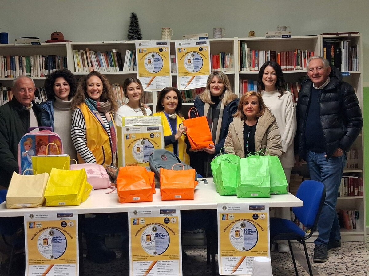 Il service, che ha preso avvio qualche mese fa, si è concluso mercoledì 28 gennaio u.s., presso la Biblioteca “Angolo Lions”,  con la consegna di zaini e materiale scolastico ai rappresentanti di alcune strutture del territorio che ospitano minori o nuclei familiari.