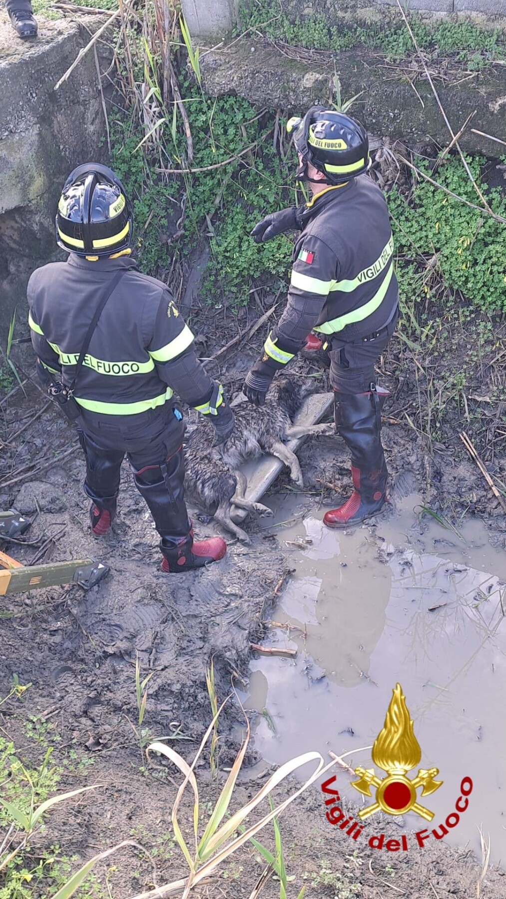 L’allarme è scattato poco prima delle ore 14:00, quando sul posto sono arrivati i Vigili del Fuoco del Comando di Crotone. Raggiunta l’area interessata, la squadra ha individuato l’animale in evidente difficoltà e ha avviato le operazioni per liberarlo.