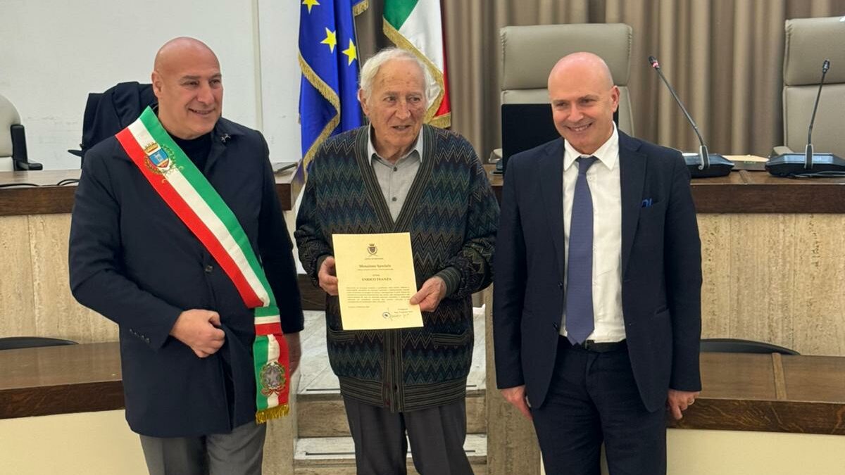 Si è svolta nella Sala Consiliare “Falcone e Borsellino” la cerimonia di conferimento della Menzione Speciale, prevista dal Regolamento Comunale per la concessione delle benemerenze civiche, al prof. Enrico Franza.