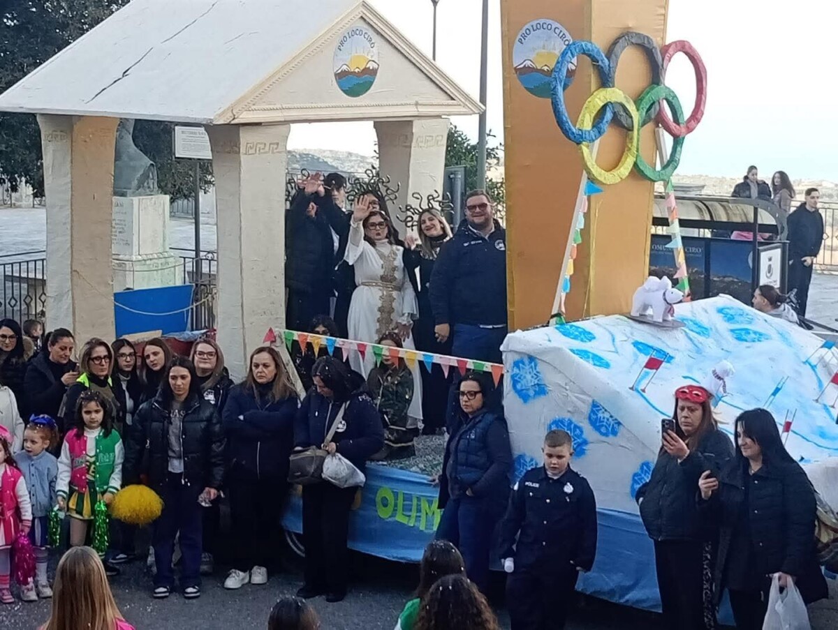 Cirò- A Cirò Carnevale pulito a prova di bambino grazie alla sensibilizzazione da parte del decreto emesso in proposito dal primo cittadino e dalla Proloco. Grande manifestazione dedicata ai bambini quella del carnevale organizzato dalla Pro-loco presieduta da Niki De Franco. Un carnevale a tema dedicato alla Grecia al sogno olimpico”, questo l’oggetto del carro che è stato realizzato quest’anno per il carnevale 2026, un tributo alla nostra terra e alle olimpiadi che si stanno svolgendo in questo periodo in Italia. Nonostante il freddo, la costruzione del carro- ha detto il presidente- “è avvenuta con momenti di condivisione e divertimento grazie di cuore ai soci della Pro Loco e non solo, che si sono adoperati per la costruzione del carro, un ringraziamento particolare al signor Peppe Aloe, che ha messo a disposizione il capannone, dove abbiamo lavorato per la costruzione dei carri, come pure a Giuseppe Cortese, per la disponibilità del carrellone sul quale è montato il carro, e ancora grazie di cuore a Raffaele Sestito che si è prestato come autista del carro, e a tutti quelli che ogni giorno ci sostengono e ci incoraggiano ad andare avanti”.