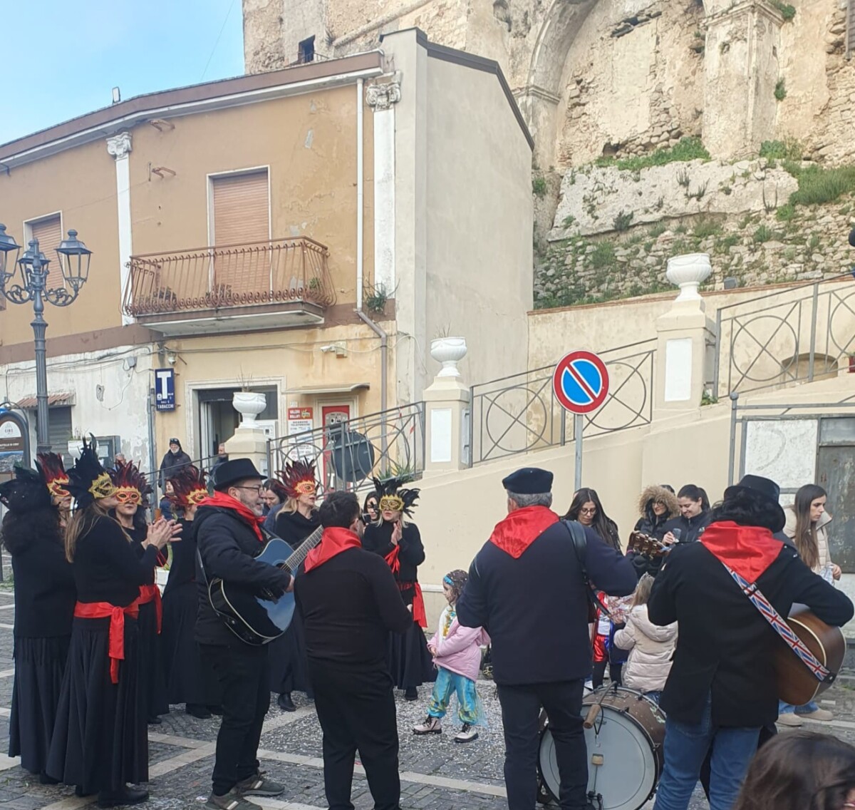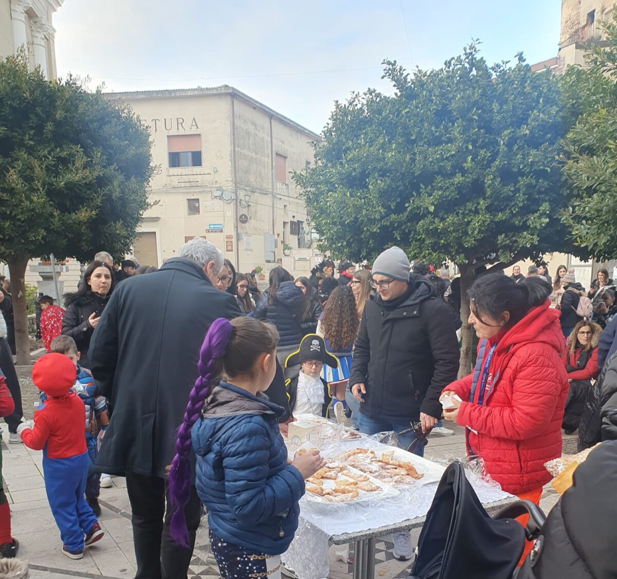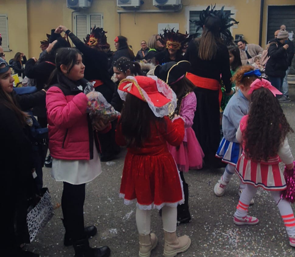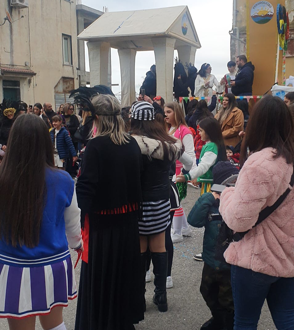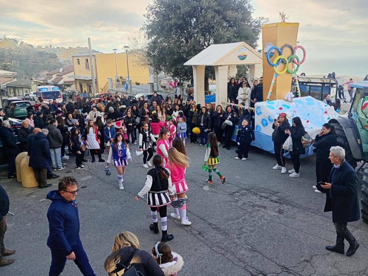 ùNumerosi i bambini vestiti in maschera accompagnati dai genitori hanno accompagnato i carri lungo il tragitto scelto per la manifestazione, partita da piazza Arenacchio fino in piazza Pugliese, dove era previsto il raduno dei carri e dei manifestanti. Qui il gruppo musicale le Calabriselle hanno dato al via ad un grande spettacolo di canti e balli in maschera. Alla manifestazione erano presenti anche le ballerine della scuola “a.s.d. Ypsicron” presieduta da Francesca Lettieri. E’ stato un pomeriggio di grande divertimento per i bambini e le famiglie, festa che ha richiamato presenze da tutto il circondario. Soddisfazione per la buona riuscita della manifestazione è stata espressa dal presidente della Pro-Loco Nico De Franco, dal sindaco Mario Sculco e dall’assessore alle manifestazioni Salvatore Giardino.