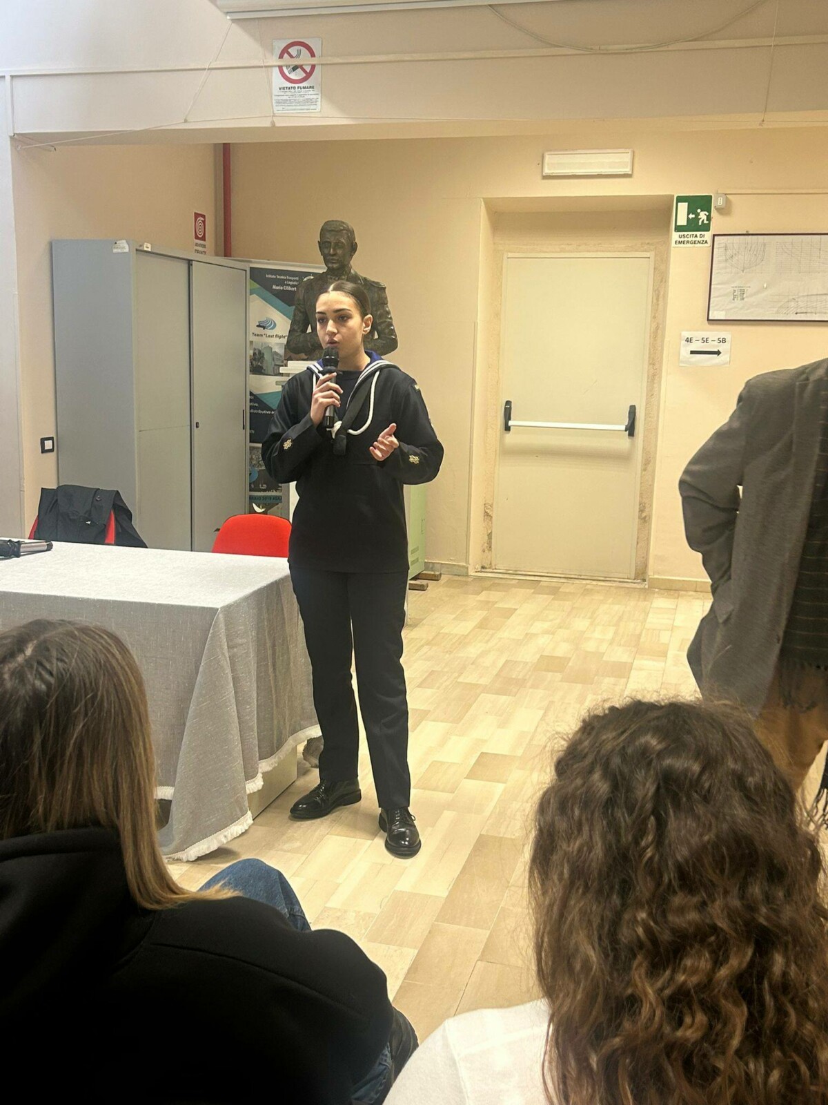 Su proposta del Com.te Domenico Morello, sempre vicino all’Istituto Nautico, lo scorso 13 febbraio si è svolto un ulteriore ed interessante incontro con il Com.te Fabio Dal Cin del Comando Marina Sud di Taranto che ha coinvolto i ragazzi delle cinque classi quinte di tutti gli indirizzi del Ciliberto sulle prospettive di carriera nei diversi corpi della Marina Militare.