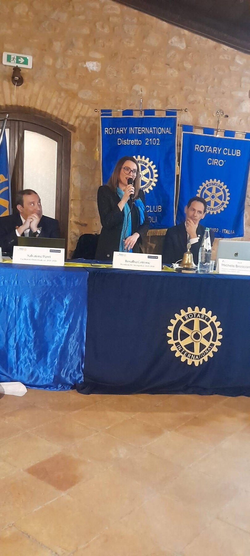 Dopo i saluti dei Presidenti Rosalba Cotrone, Giovanni Romio e Cristian Vumbaca, gli interventi introduttivi del facilitatore d’area Salvatore Perri e dei facilitatori di club Leonardo Stasi, Salvatore Terminelli e Filippo Cariglino. Presenti anche il PDG Gianni Policastri e Luigi Ielasi, delegato del Governatore per la Polio Plus Society e Presidente Commissione Polio Plus Distretto 2102 e Caterina Affilistro, delegato del Governatore rapporti Interact nazionali e internazionali e Luigi Bruno Presidente Rotaract Strongoli.
