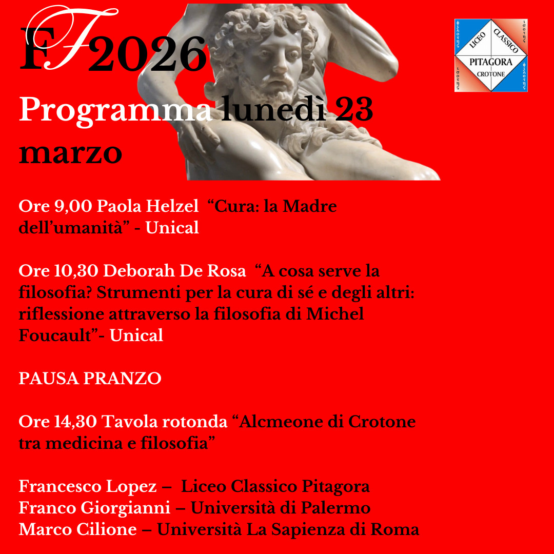 Il Liceo Classico “Pitagora” di Crotone presenta la terza edizione del Festival della Filosofia 2026 dedicato al tema “Cura”