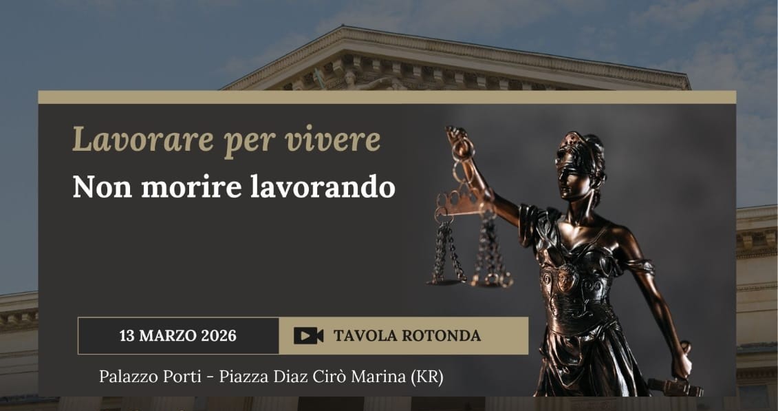 I dati parlano da soli e non lasciano spazio a rassicurazioni: nei soli primi mesi del 2026 il numero di morti sul lavoro in Italia ha già raggiunto livelli di allarme. Quasi tre vittime ogni giorno, ogni giorno dell’anno. Un’emorragia silenziosa che le statistiche registrano con fredda regolarità ma che raramente ottiene l’attenzione che merita. Per accendere i riflettori su questo dramma, il 13 marzo 2026 a Cirò Marina — Palazzo Porti, ore 15:00 — la Misericordia di Cirò Marina, la Camera dei Giuslavoristi e Previdenzialisti di Crotone e l’azienda “ Gruppo Spataro” hanno organizzato la tavola rotonda “Lavorare per vivere — non morire lavorando”. Abbiamo raccolto le voci dei protagonisti