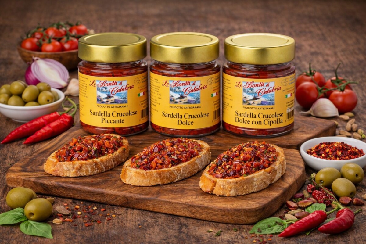 Un prodotto simbolo della cultura culinaria calabrese, realizzato seguendo fedelmente la ricetta originaria di Crucoli, piccolo borgo dell’alto ionio crotonese noto proprio per questa specialità unica. Alla base della preparazione pochi ingredienti selezionati, ma dal carattere deciso: sardine fresche, peperoncino di qualità e finocchietto selvatico, sapientemente lavorati per ottenere un gusto intenso e inconfondibile.